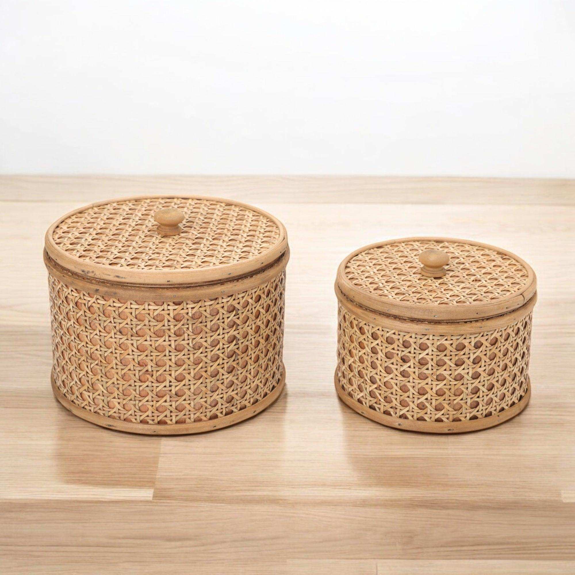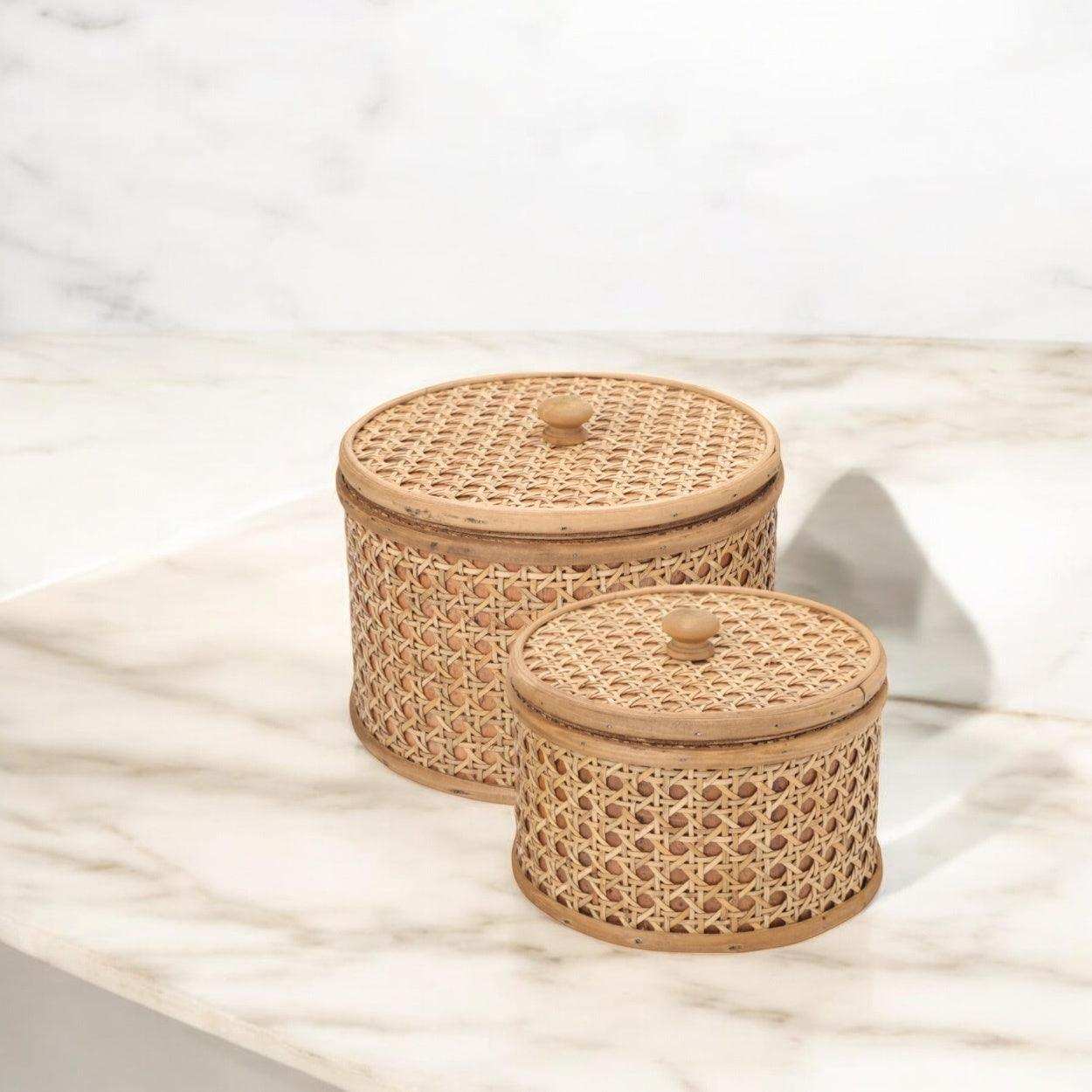 Utiliza las cajas de almacenamiento como acentos decorativos combinándolas con otros accesorios naturales como velas y plantas. Colócalas sobre una cómoda o mesa y llénalas con objetos que quieras tener a mano, pero fuera de la vista. También en el baño, las cajas son una solución elegante para guardar pequeños productos de cuidado personal. El aspecto natural de la madera y el detalle de rejilla hacen que sean un complemento con estilo en cualquier espacio.