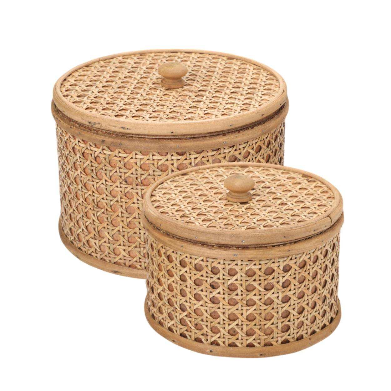 Las cajas de almacenamiento Bonito 21 cm de House of Nature son una combinación perfecta de estilo y funcionalidad. Estas cajas redondas, hechas de madera y con detalles de rejilla, aportan un toque natural a cualquier interior. El set incluye dos tamaños: la caja grande tiene un diámetro de 21 cm y una altura de 16 cm, mientras que la versión pequeña tiene un diámetro de 17 cm. Ambas cajas cuentan con tapa, por lo que son ideales para guardar pequeños objetos de forma ordenada. Estas elegantes cajas de almacenamiento le dan a tu hogar un aspecto cálido y organizado.