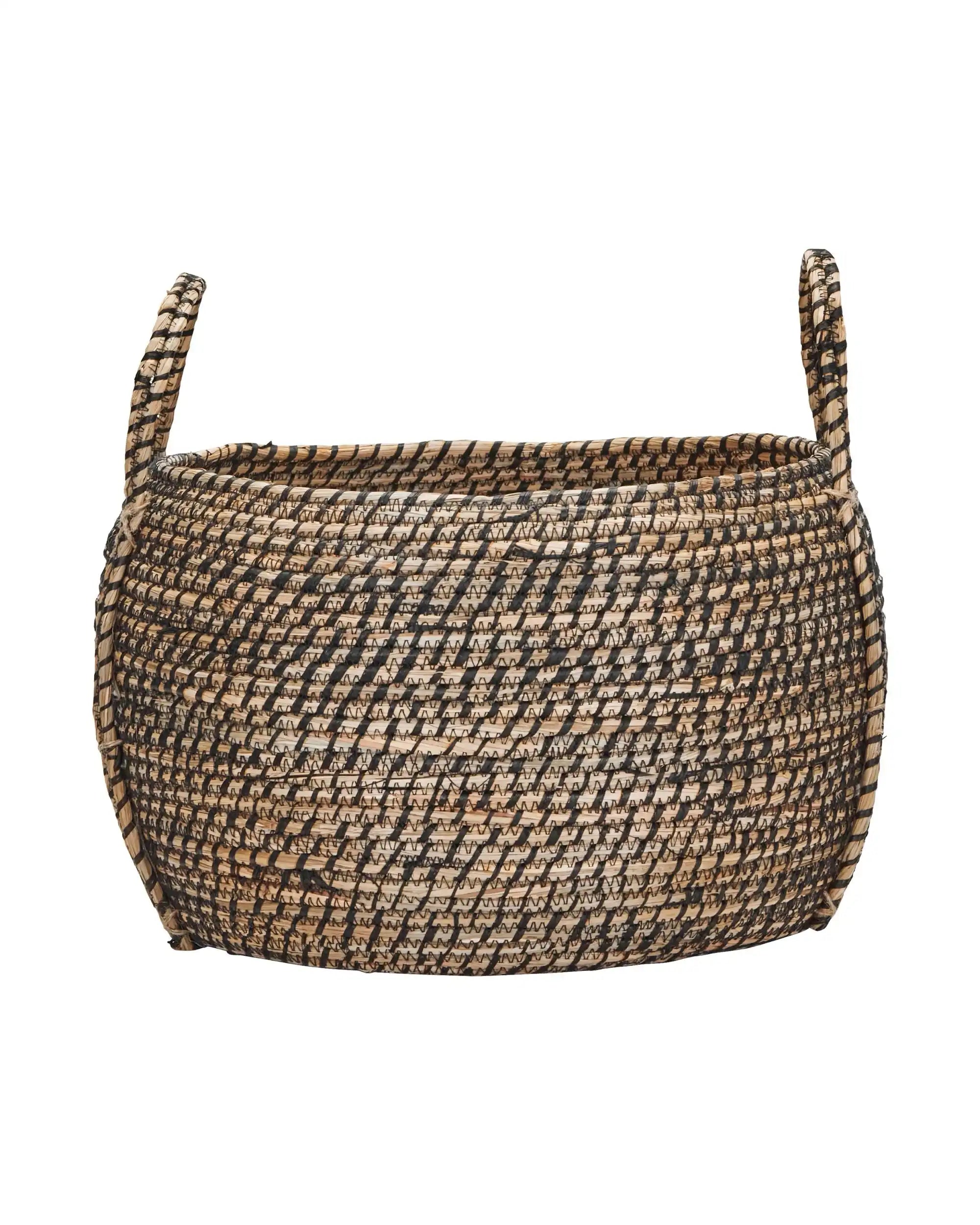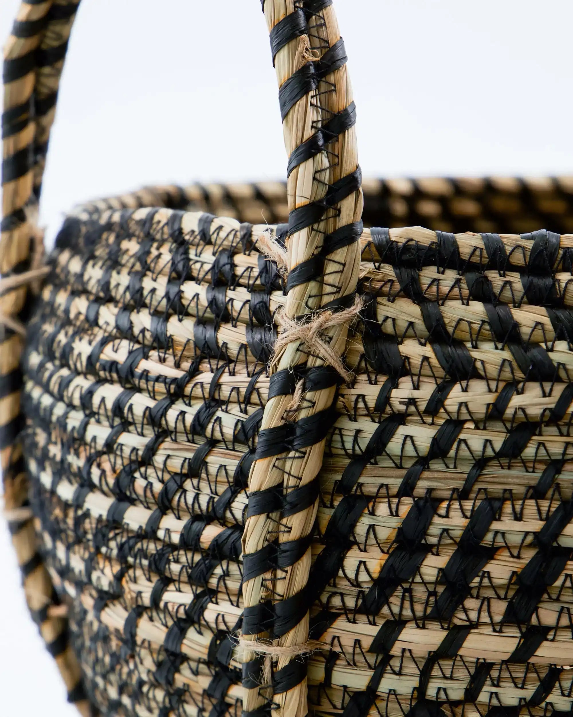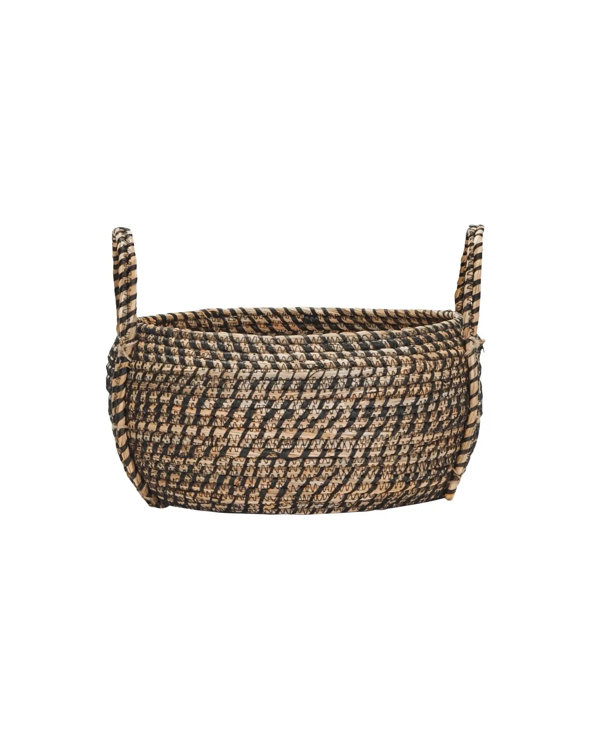 Este set de dos cestas de almacenamiento hechas a mano aporta tranquilidad a tu interior. Gracias a la sutil combinación de negro y tonos naturales, añaden calidez a cualquier habitación sin esfuerzo. Colócalas junto al sofá, en el recibidor o en una estantería abierta: son un complemento elegante dondequiera que las uses.
