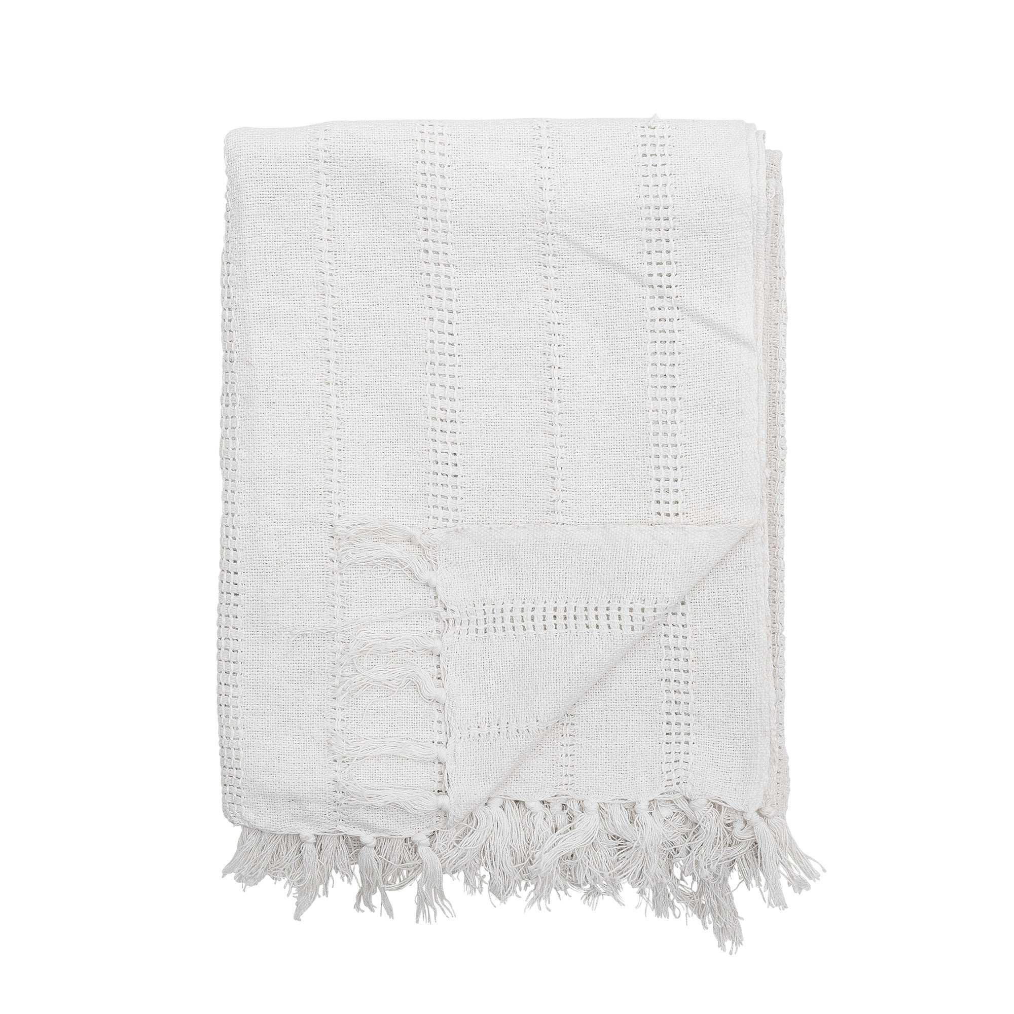 Detalles y material: Esta manta de la serie Niccoline de Bloomingville está tejida con maestría en 100% algodón y presenta tonos blancos serenos. Con un tamaño de 130 x 150 cm y elegantes flecos en los extremos, se siente deliciosa al tacto y aporta un toque final sofisticado a cualquier interior. Ideal para quienes aman el minimalismo y la elegancia.