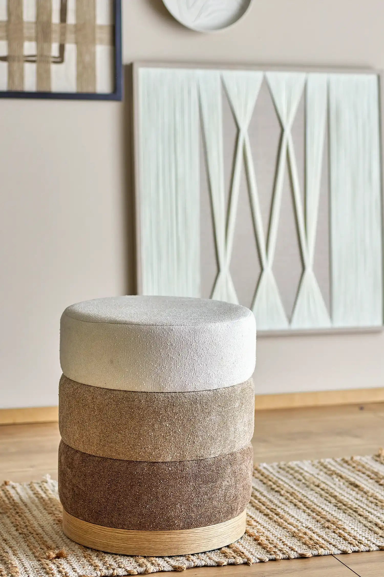 Detalles y material: Este puf de Bloomingville está fabricado en poliéster resistente, lo que garantiza una sensación agradablemente suave y una larga vida útil. Con una altura de 45 cm y un diámetro de 40 cm, es compacto pero lo suficientemente amplio como para sentarte cómodamente o descansar las piernas. Además, su diseño contemporáneo combina perfectamente con interiores escandinavos.