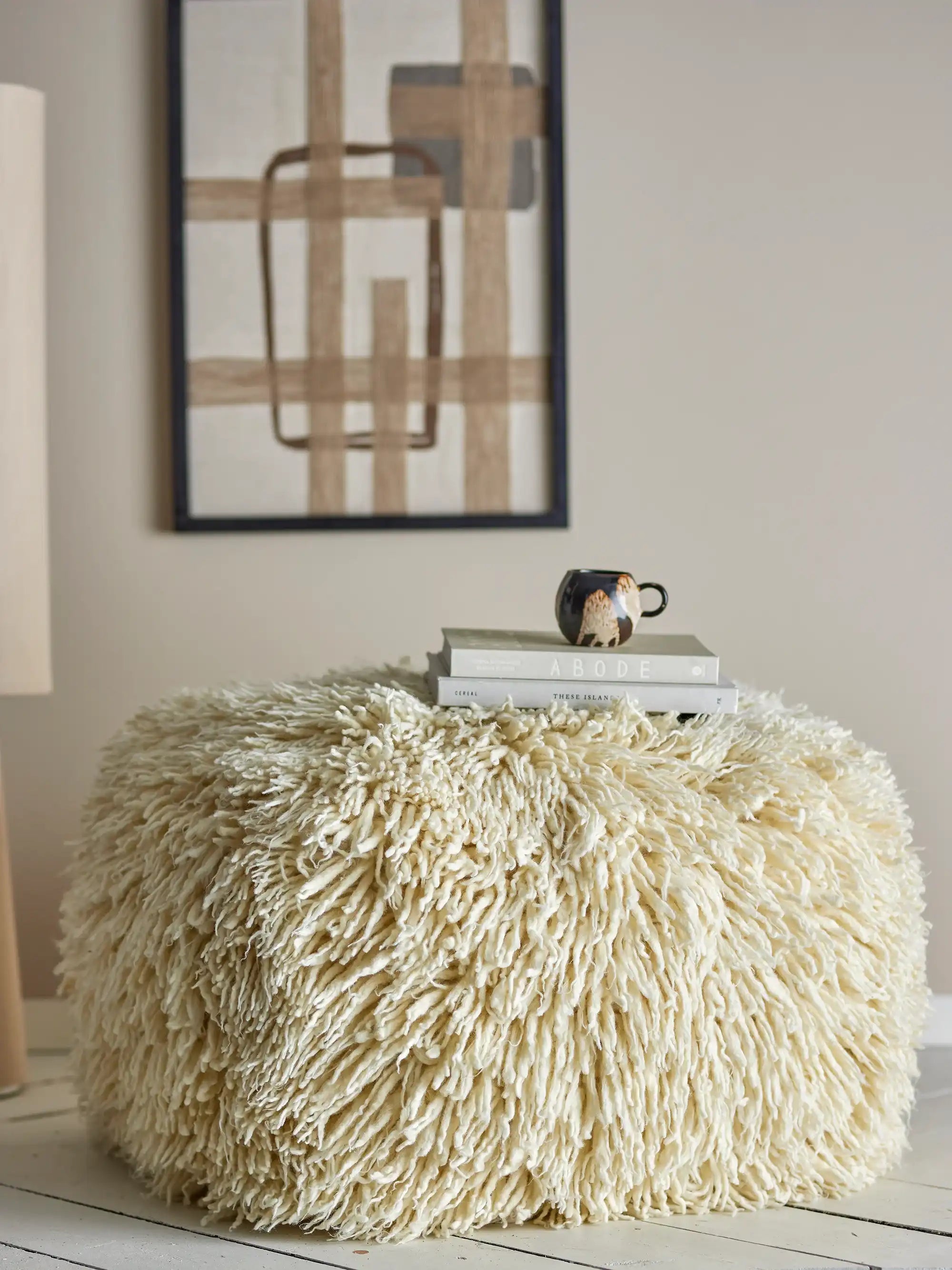 Por qué querrás tener este puf de Bloomingville: El puf de pura lana en tonos naturales aporta de inmediato un ambiente cálido y acogedor a tu hogar. Su aspecto elegante y su comodidad invitan a que tu salón se sienta realmente como un hogar escandinavo.