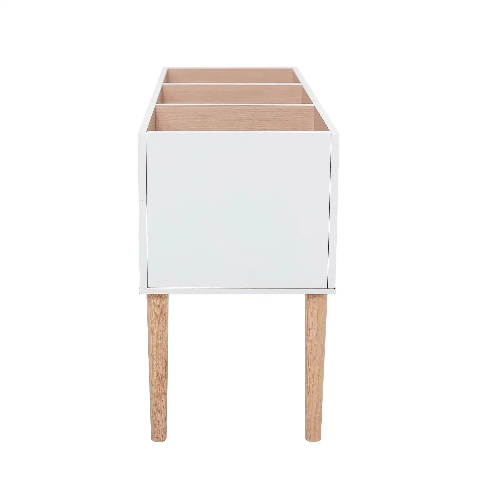 Detalles y material: La Salam está hecha de madera y tiene un acabado blanco y elegante que queda genial junto a una cuna, cama o rincón de juegos. Las dimensiones de a × a × p 30 × 50 × 90 cm ofrecen mucho espacio para organizar los libros como prefieras: por tipo, por serie o simplemente por intuición. El material robusto se siente suave y transmite calma. La forma sencilla hace que los libros destaquen. Así, la estantería es práctica y bonita en cualquier habitación infantil. El color blanco combina bien con colores alegres y tonos de madera natural.