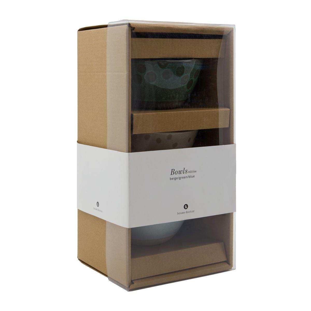¿Buscas un set de cuencos que sea práctico y elegante? El House Doctor Schaaltjes Cadeau Set Like ofrece una combinación única de encanto artesanal y colores modernos. Este set incluye tres preciosos cuencos de cerámica, cada uno con un exclusivo diseño de puntos y una estructura robusta en la base. En los colores beige, verde y azul, estos cuencos aportan un toque de color a tu mesa y son perfectos para cualquier ocasión, desde el desayuno hasta aperitivos y sopas.