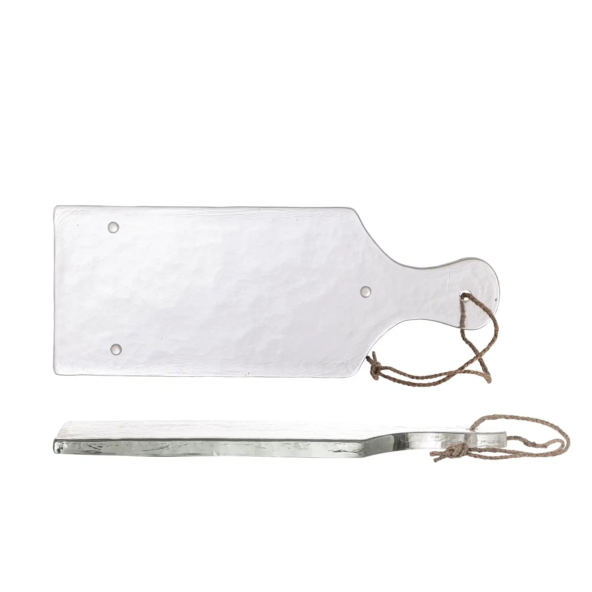 Detalles de alta calidad y material sostenible: Esta tabla para servir está fabricada con vidrio reciclado, por lo que eliges conscientemente un diseño sostenible. Gracias a su generoso tamaño de 38,5 x 14,5 cm, puedes servir fácilmente tapas, quesos o dulces. El resistente lazo de yute facilita darle un lugar destacado en tu cocina.