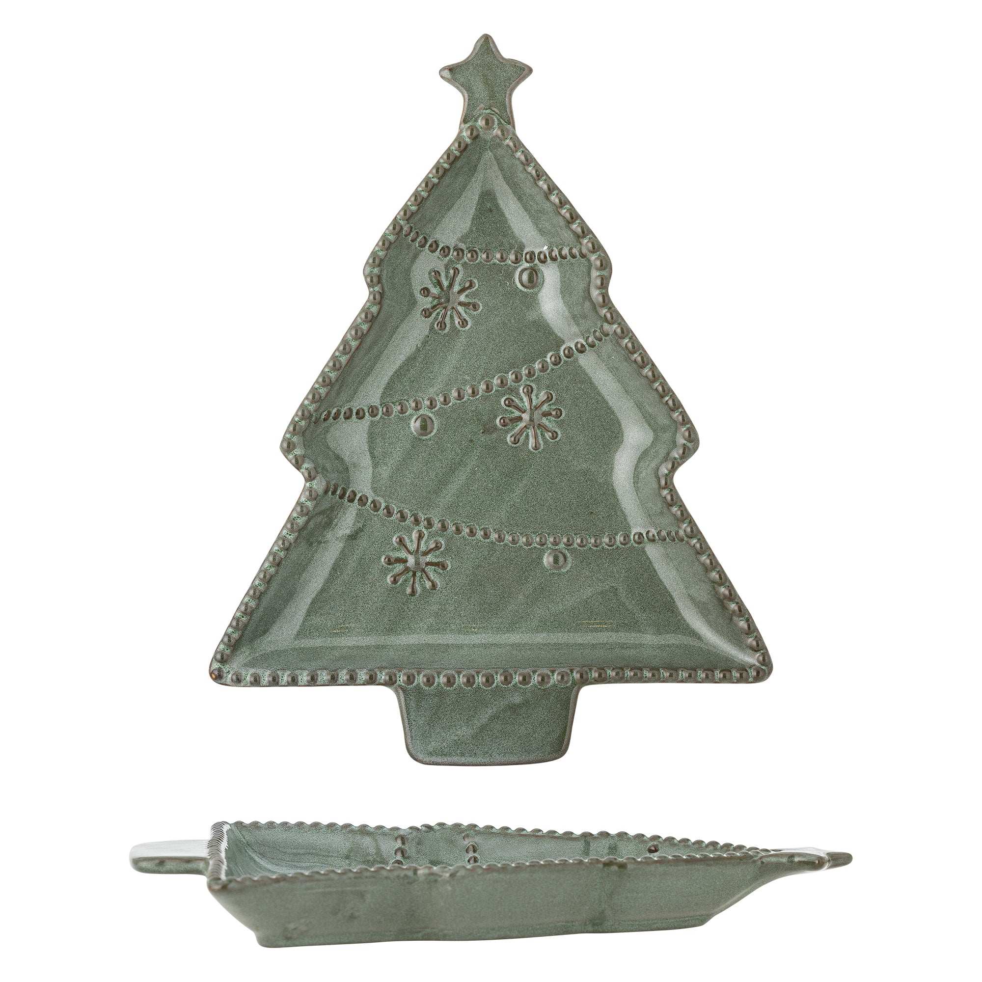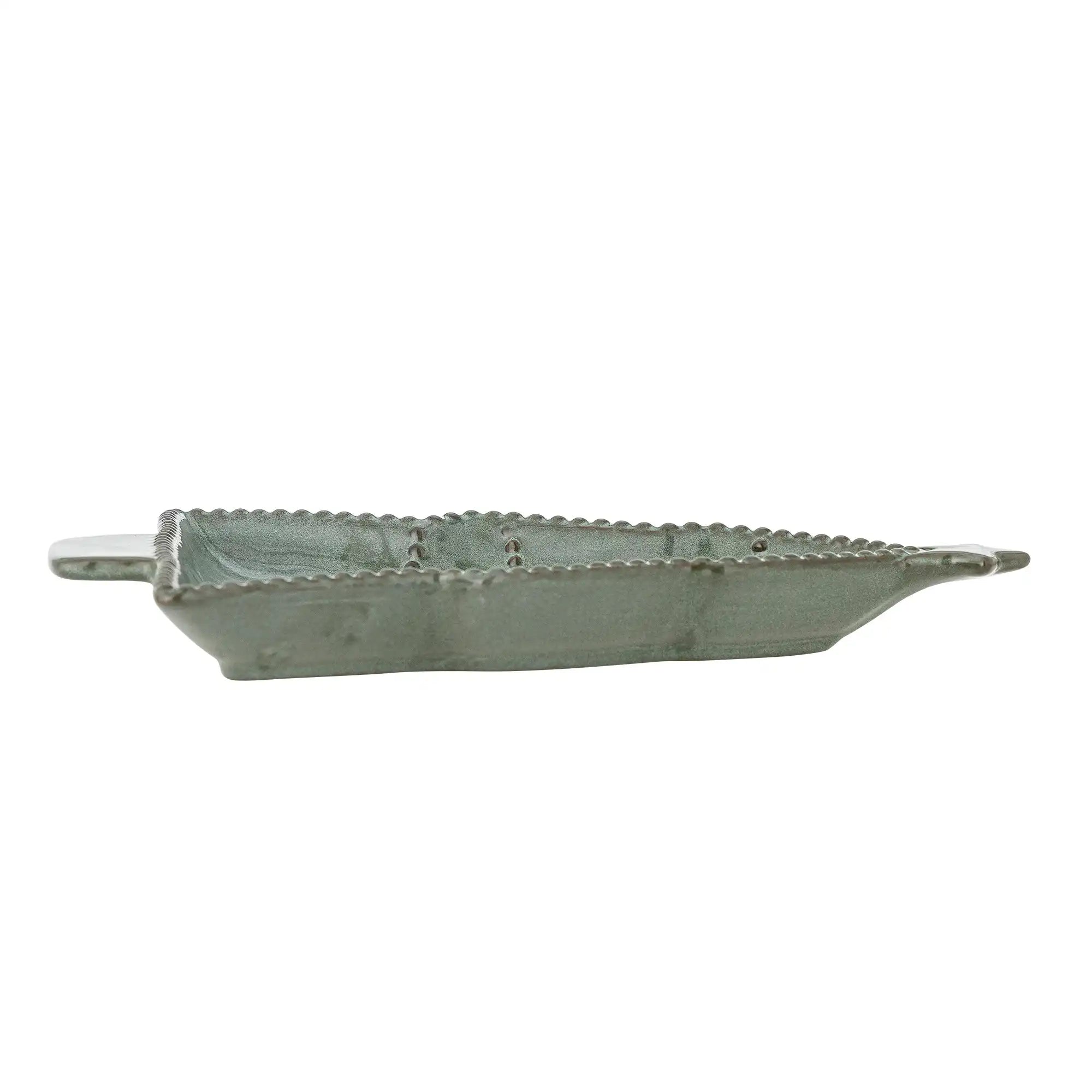 Detalles y material: La bandeja está fabricada en cerámica de alta calidad y acabada con un esmalte reactivo verde, lo que hace que cada pieza sea sutilmente única. Gracias a su generoso tamaño de 24 x 19 cm, tienes espacio suficiente para todo tipo de delicias, mientras que el diseño atemporal de Bloomingville combina fácilmente con cualquier otra decoración de mesa.
