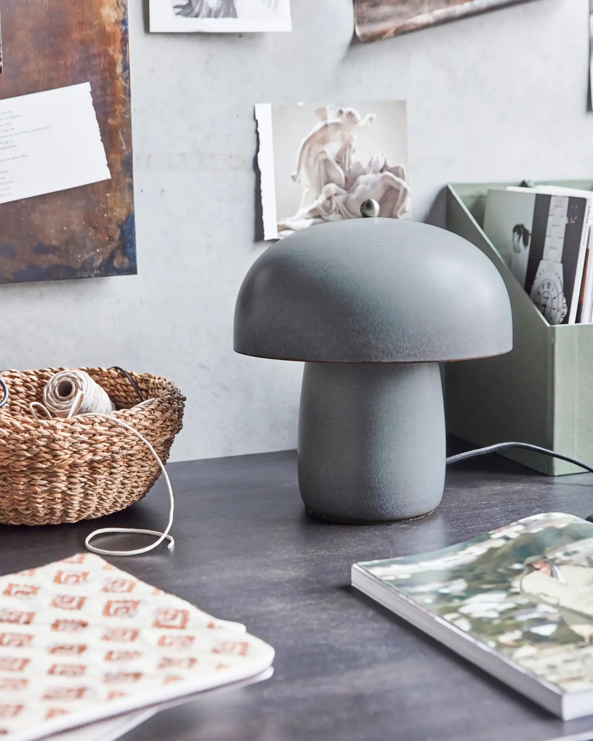 Un discreto punto de atracción que aporta calma y estilo a tu interior. La lámpara de mesa Moss combina una forma orgánica con un aire moderno, perfecta para quienes buscan un diseño sobrio con carácter. Su luz suave crea un ambiente cálido, mientras que las líneas redondeadas se integran fácilmente en cualquier espacio, desde el minimalista hasta el bohemio.