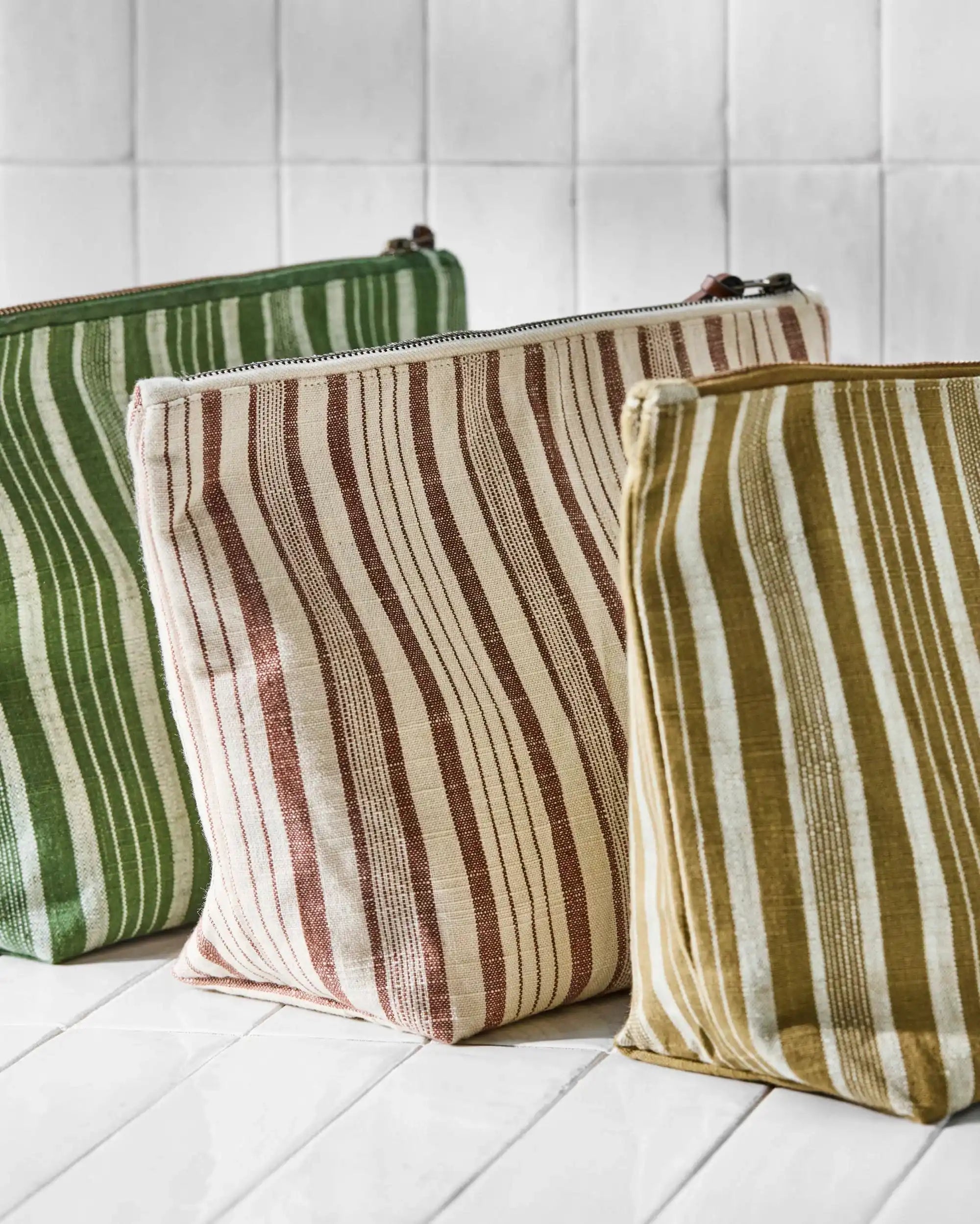¿Buscas un neceser elegante y práctico para casa o para llevar de viaje? Esta versión en cálido tono terracota no solo es funcional, sino que también aporta un toque natural y sofisticado a tu baño o bolsa de viaje. El patrón a rayas crea una textura sutil que luce bien en cualquier lugar donde lo pongas.