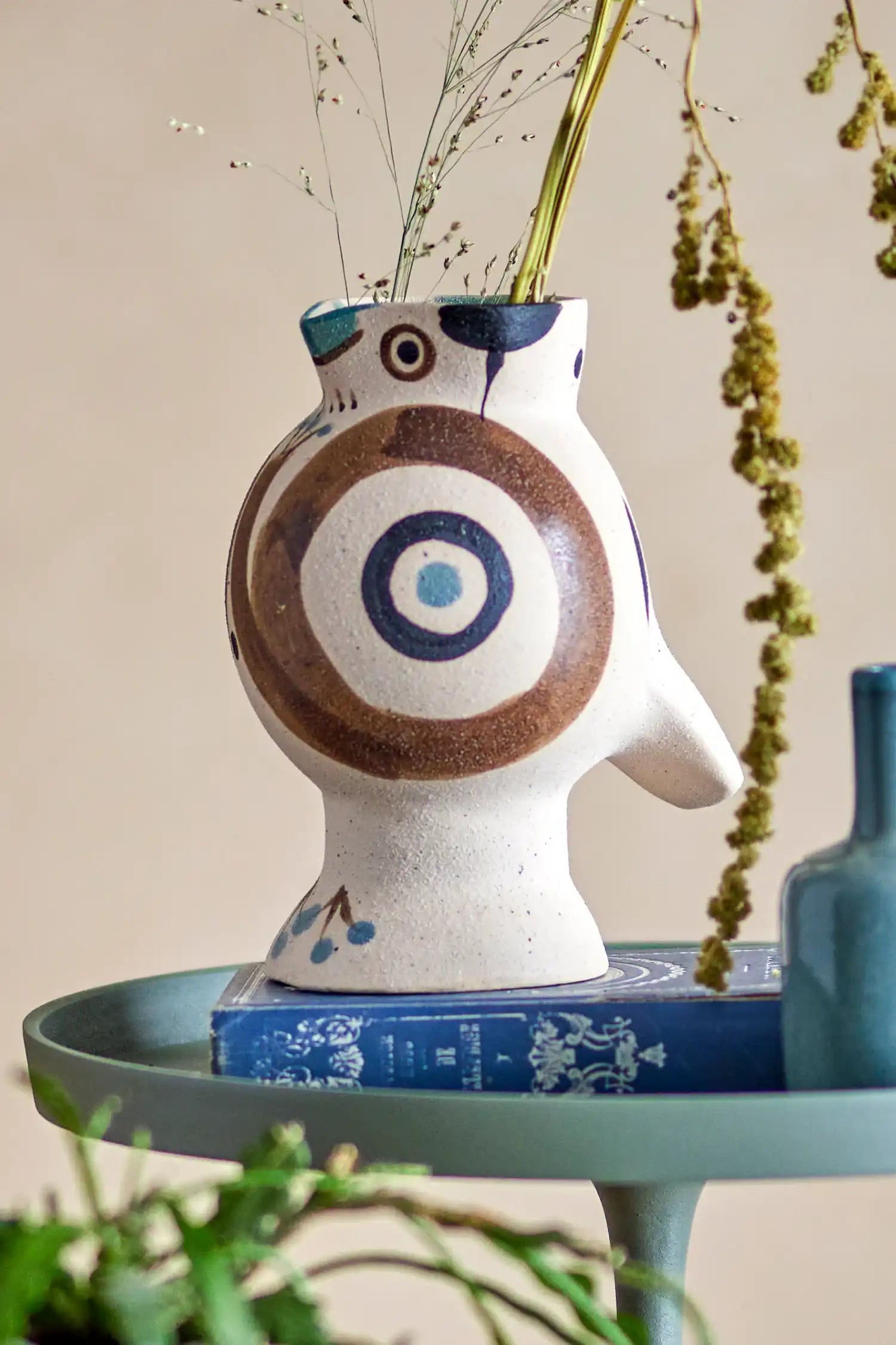Consejo de uso: Coloca el jarrón solo como objeto artístico o combínalo con algunas flores silvestres sueltas para un toque divertido. Su carácter artesanal lo convierte además en un regalo único para los amantes del estilo escandinavo.
