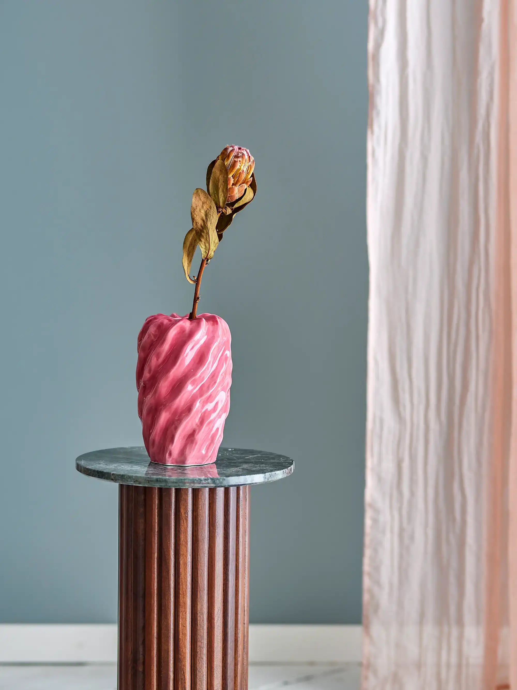 Por qué querrás tener este jarrón de Bloomingville: El jarrón Rowena aporta de inmediato un ambiente alegre y cálido a tu hogar con sus formas retorcidas y su suave color rosa. Incluso sin flores, es un verdadero punto de atracción, perfecto para realzar tu estilo sin esfuerzo.
