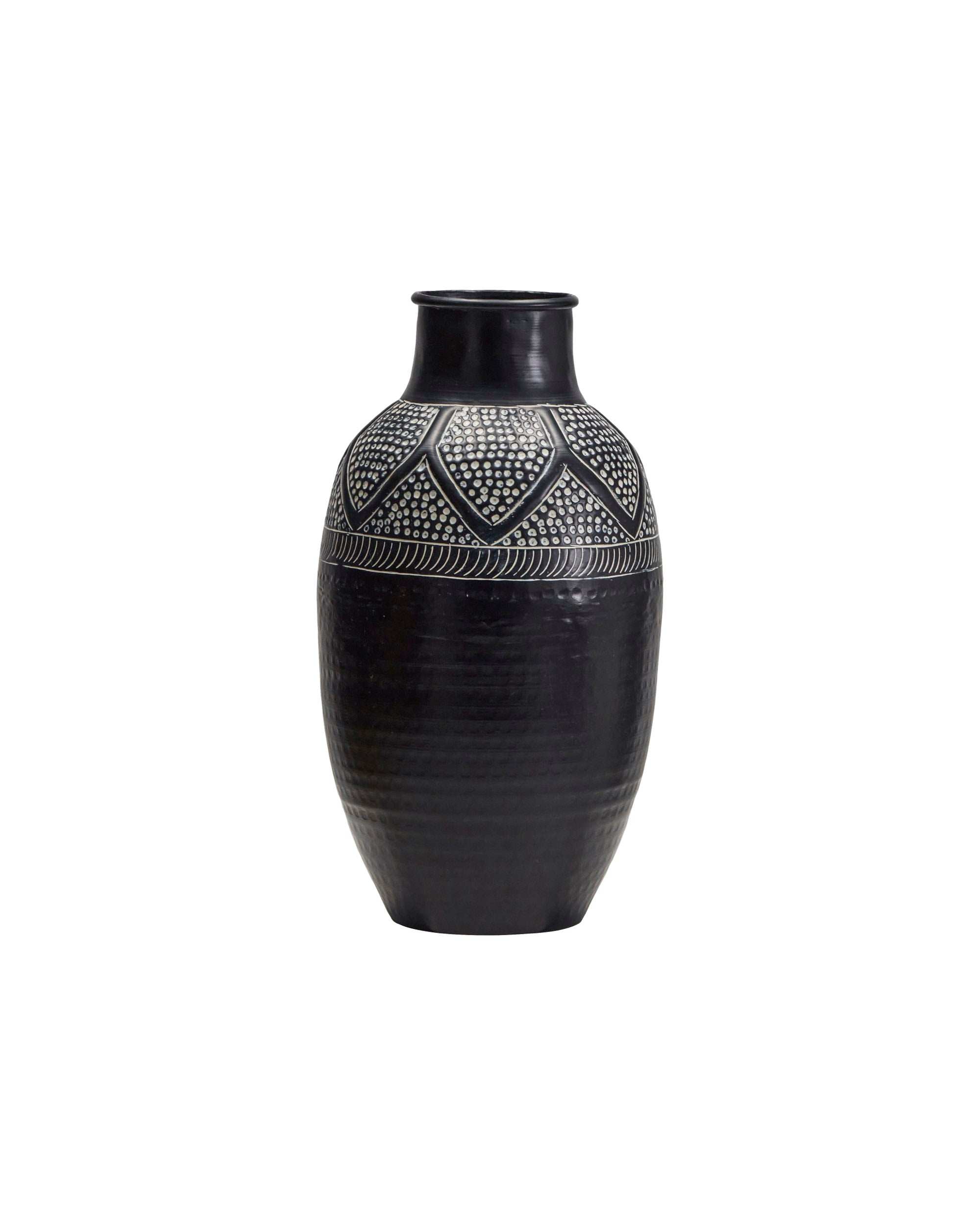 El jarrón Bloss de House Doctor es una pieza única en tu interior. Con su color negro mate, cuello alargado y superficie sutilmente acanalada, este jarrón irradia un equilibrio perfecto entre elegancia y un toque industrial. Fabricado con una mezcla ligera pero resistente de aluminio y hierro, el jarrón Bloss, con sus 38 cm de altura y 20,5 cm de diámetro, es un verdadero punto de atracción, incluso sin flores.