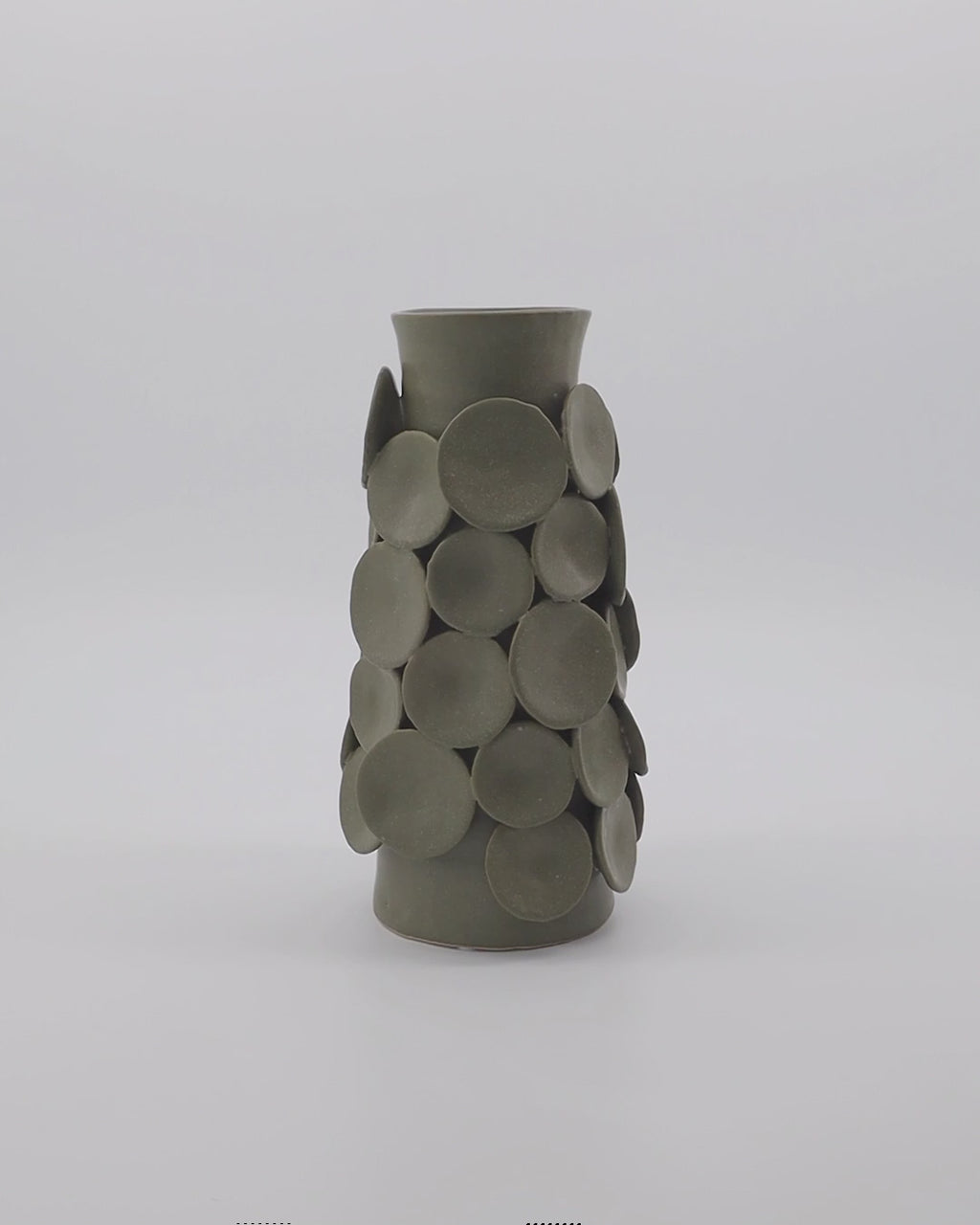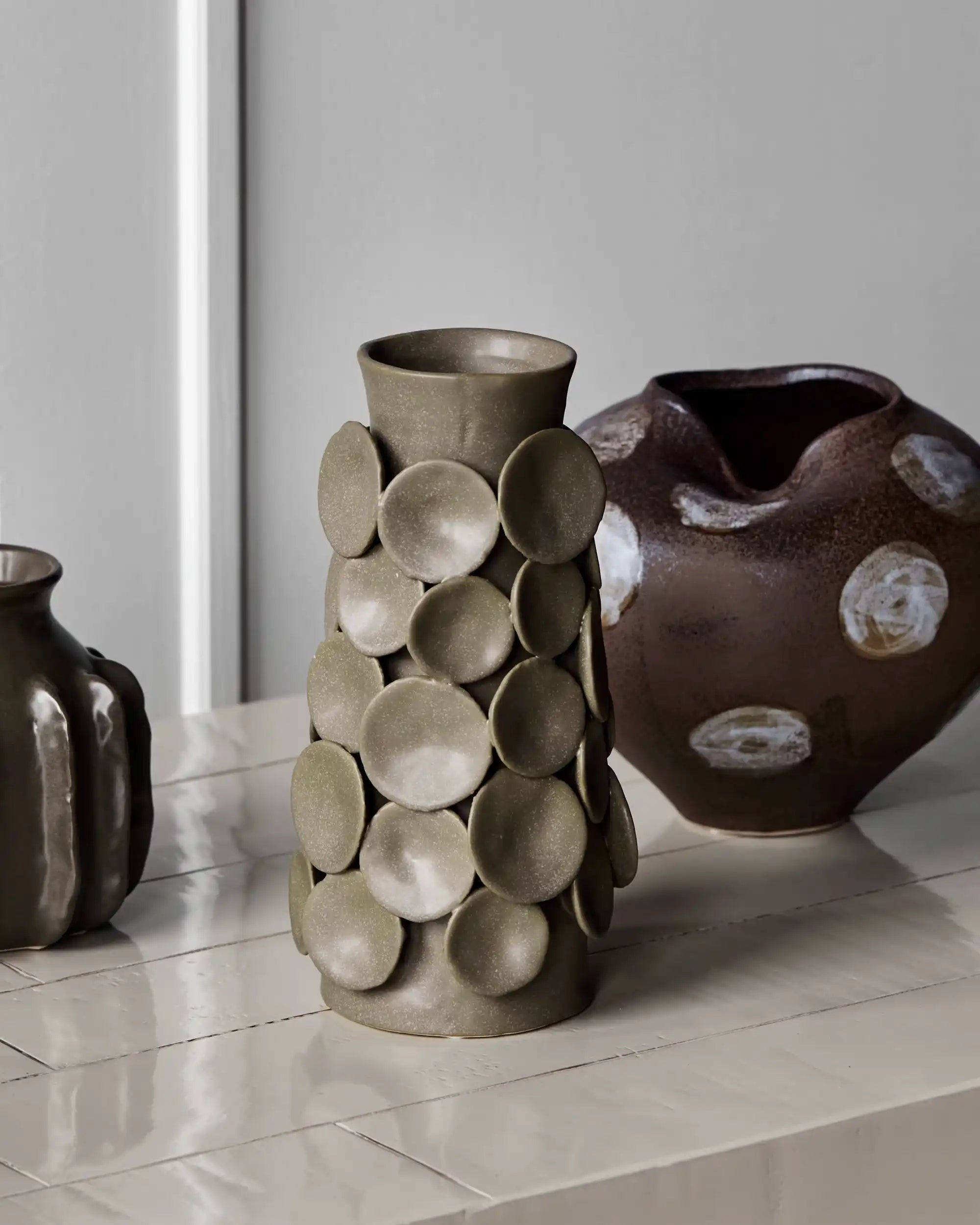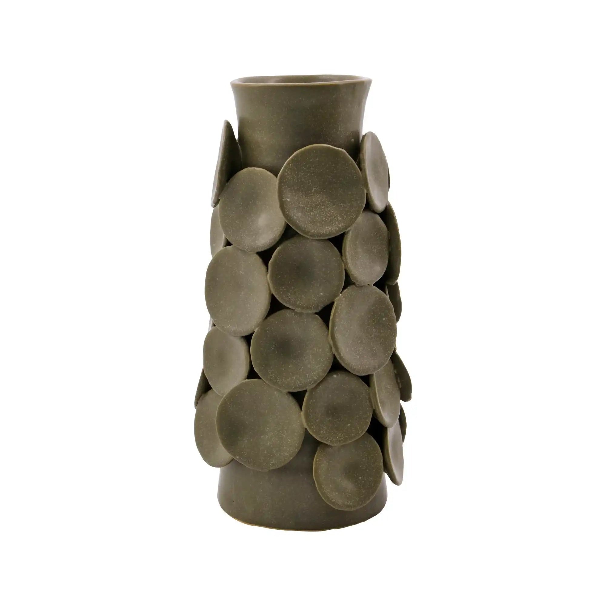 Dale a tu interior un toque artístico y elegante con el jarrón Dot en color caqui. Este jarrón hecho a mano de cerámica resistente destaca de inmediato por su exclusivo relieve de círculos cerámicos superpuestos. El diseño atemporal y el acabado mate y elegante convierten este jarrón en un verdadero punto de atracción para cualquier interior moderno o clásico.