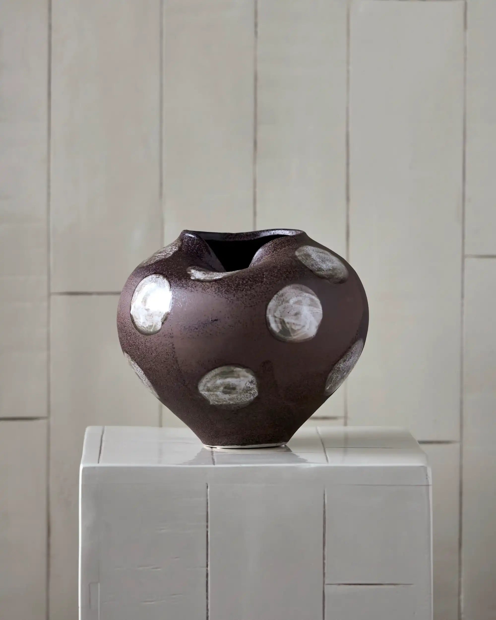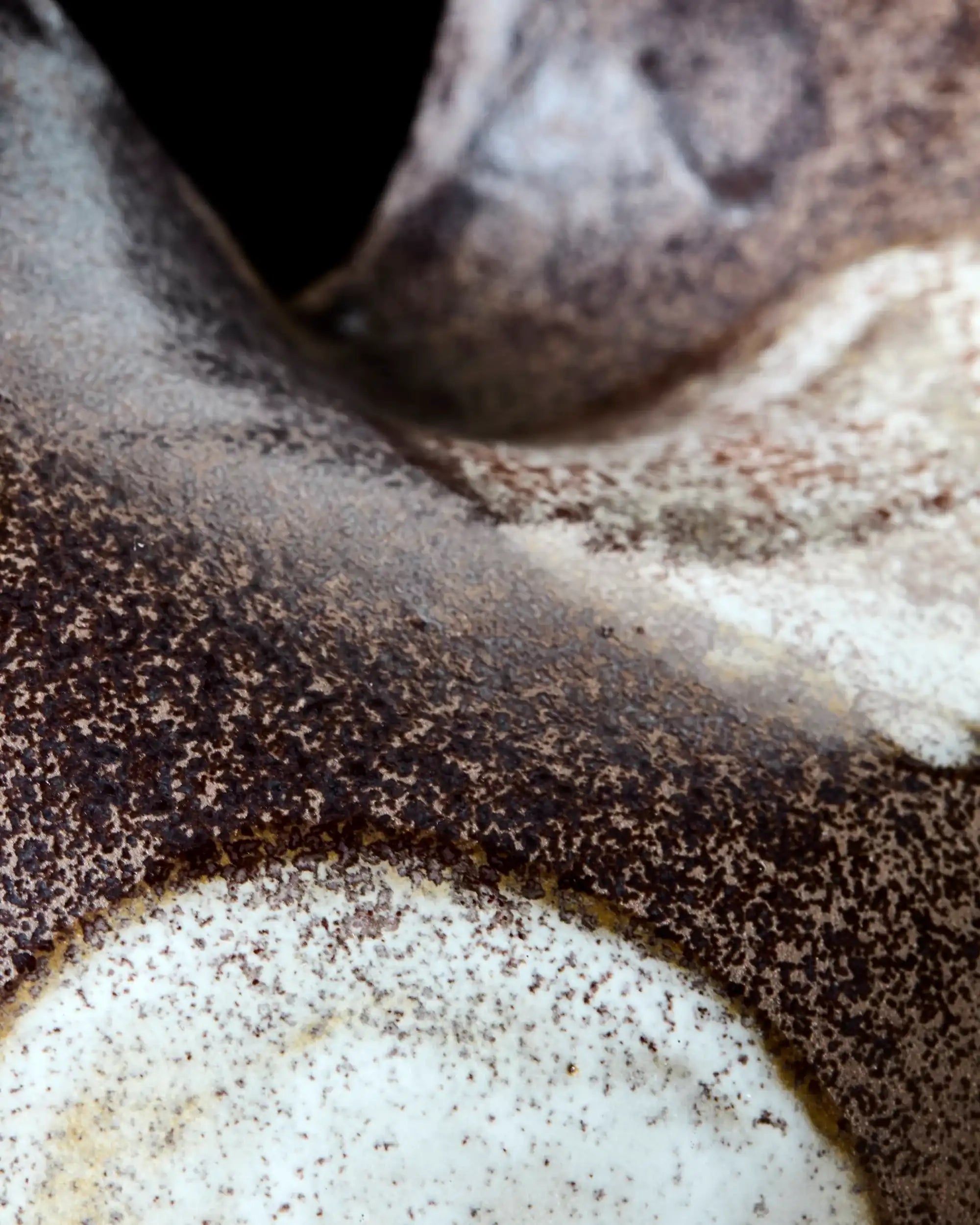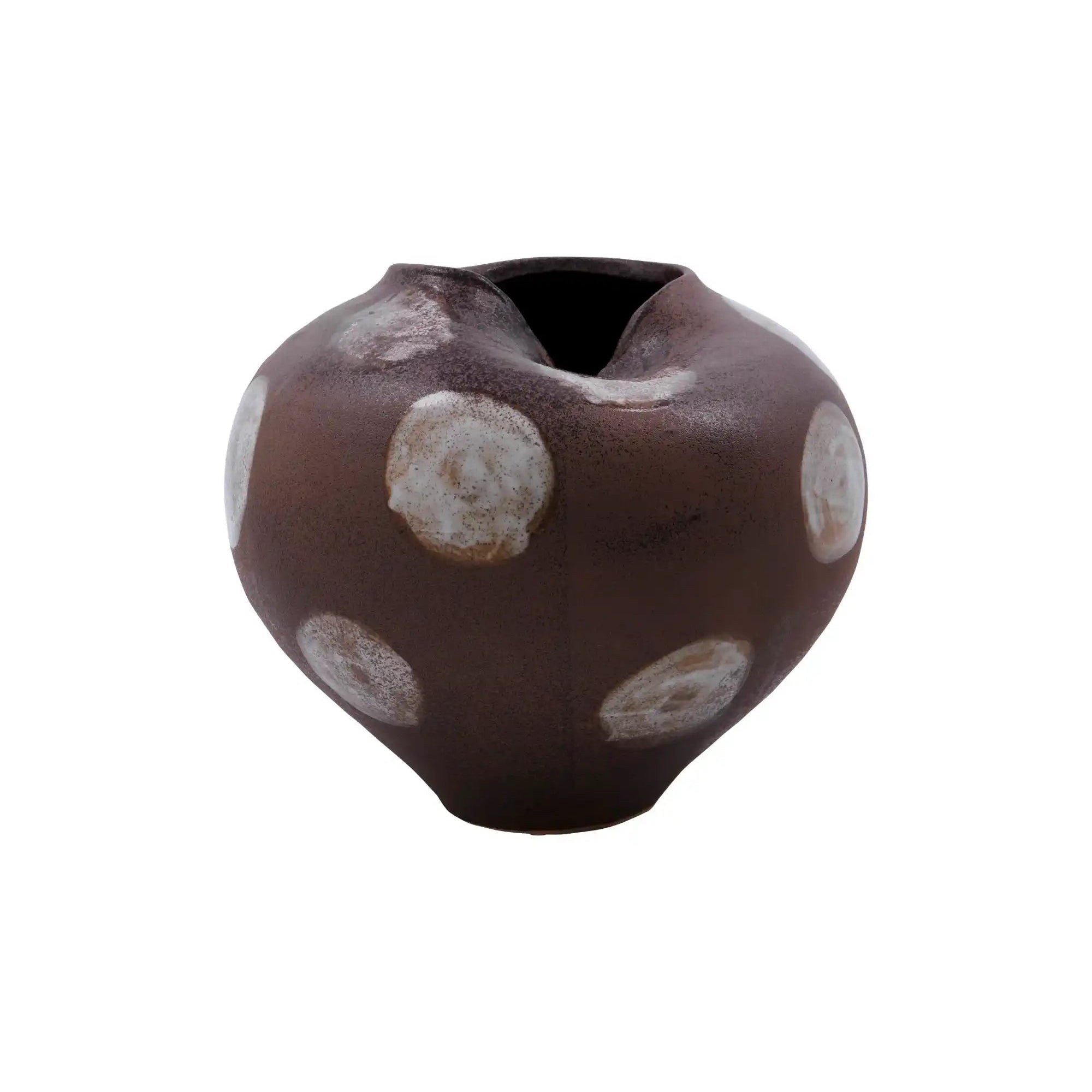Aporta un ambiente bohemio y artístico a tu hogar con el jarrón Expo hecho a mano en marrón y blanco roto. Este elegante jarrón, fabricado en cerámica de alta calidad, combina un color cálido con un patrón artístico y único. Su forma orgánica lo convierte en un verdadero punto de atracción en tu mesa, aparador o alféizar, y luce espectacular en cualquier interior.