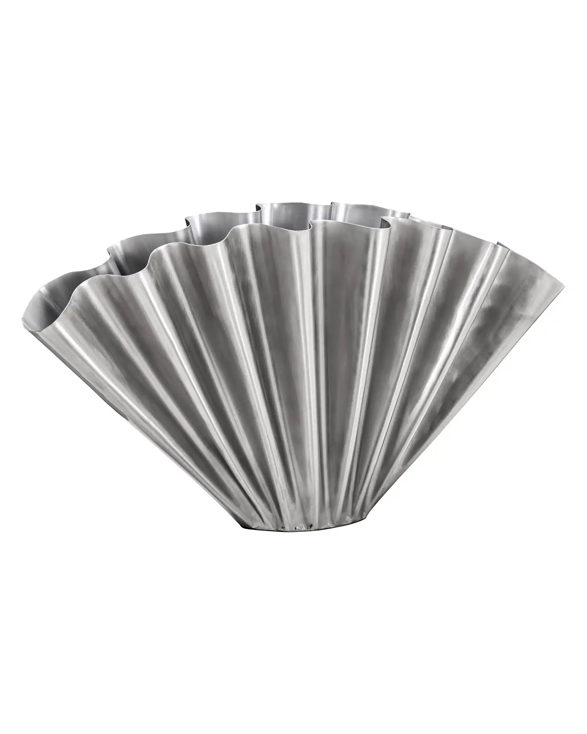 Descubre el jarrón Flood con acabado plateado cepillado: una pieza llamativa y especial de House Doctor. Este jarrón de metal hecho a mano destaca de inmediato por su aspecto moderno y robusto. Gracias a los laterales plisados, tu arreglo floral adquiere un toque dinámico y las flores se mantienen perfectamente en su sitio.