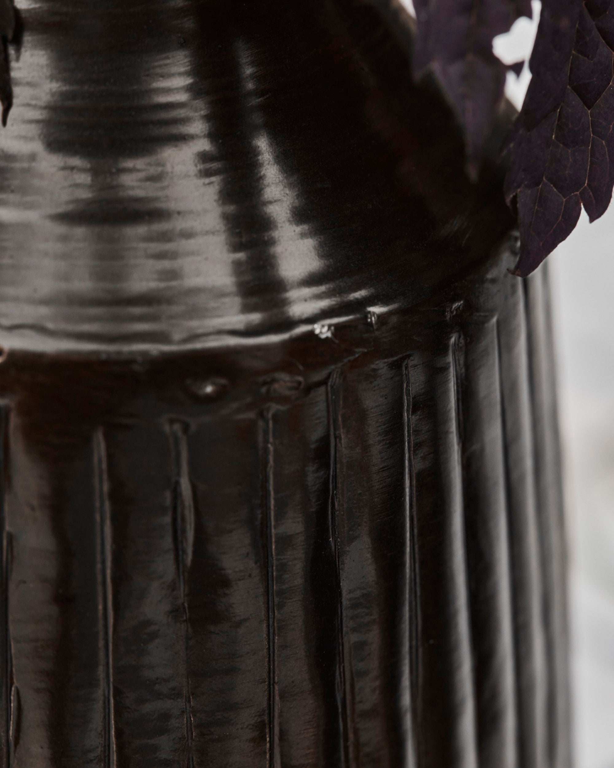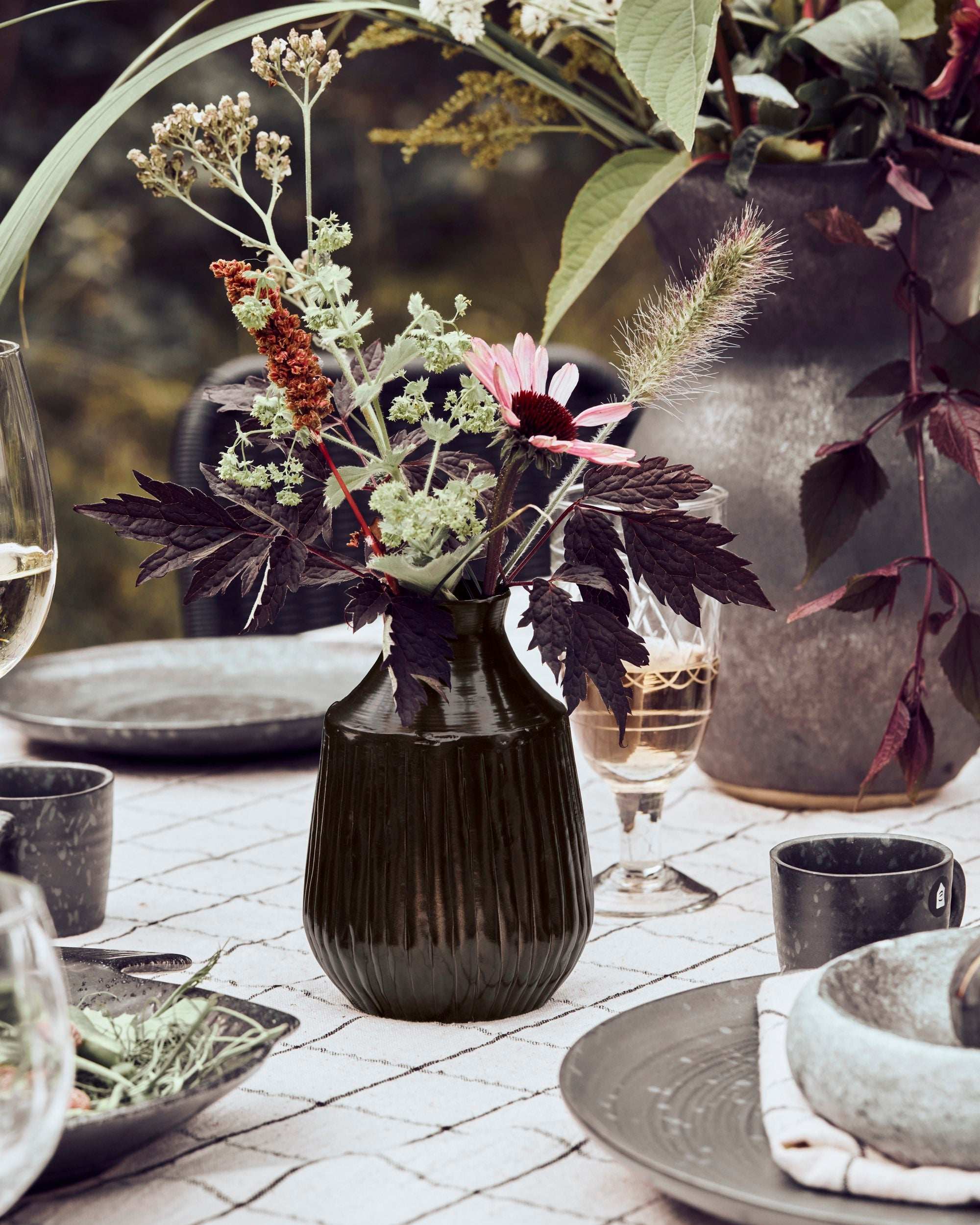 Combina el jarrón Groove con otros jarrones en diferentes formas y tonos marrones o de latón para un estilo cálido y ton sur ton. Añade flores secas para una decoración acogedora y fácil de mantener.