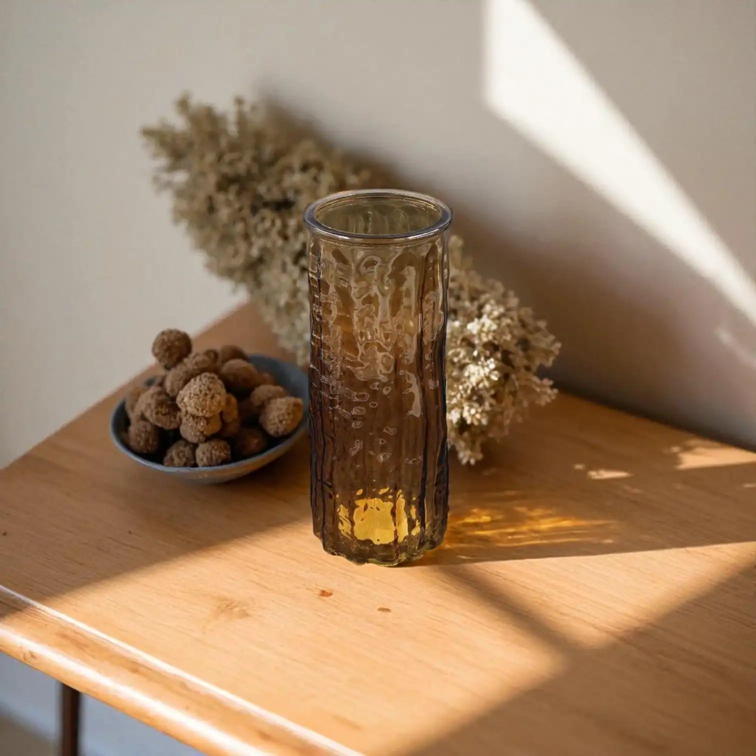 Con su altura de 20 cm y diámetro de 8 cm, el Vaas Juliëtte es perfecto para unas pocas flores sueltas, ramas secas o simplemente como acento decorativo. Su color cálido aporta profundidad y calidez en cualquier estación, y combina maravillosamente con materiales naturales como madera, lino y cerámica.