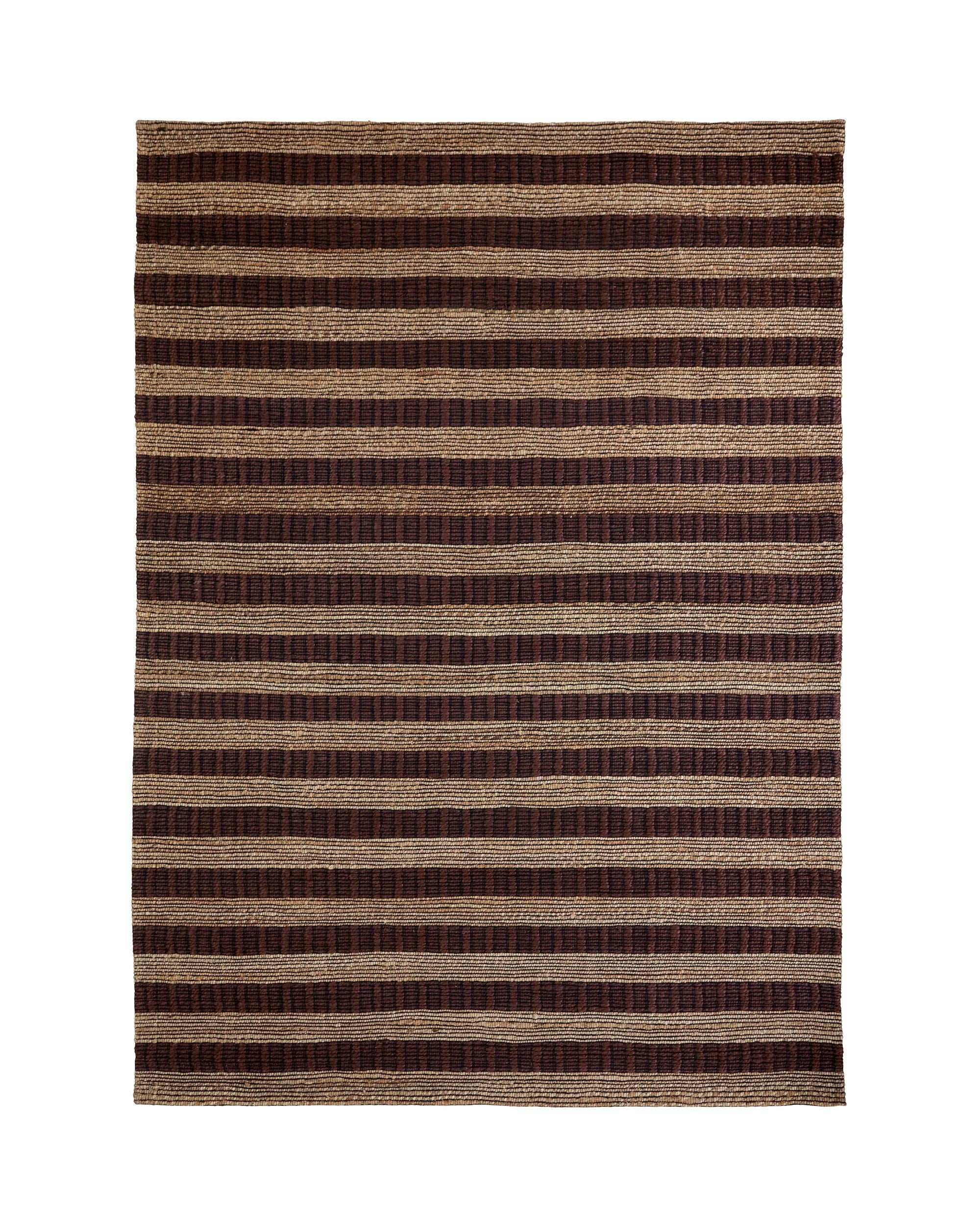 La alfombra está tejida cuidadosamente con un 92% de yute, complementado con algodón, viscosa y poliéster para mayor comodidad y un ligero brillo. Las fibras naturales aportan un ambiente rústico, mientras que el diseño moderno añade un toque de dinamismo. Ideal como elemento de unión en un espacio abierto o como acento cálido en un interior más sobrio.