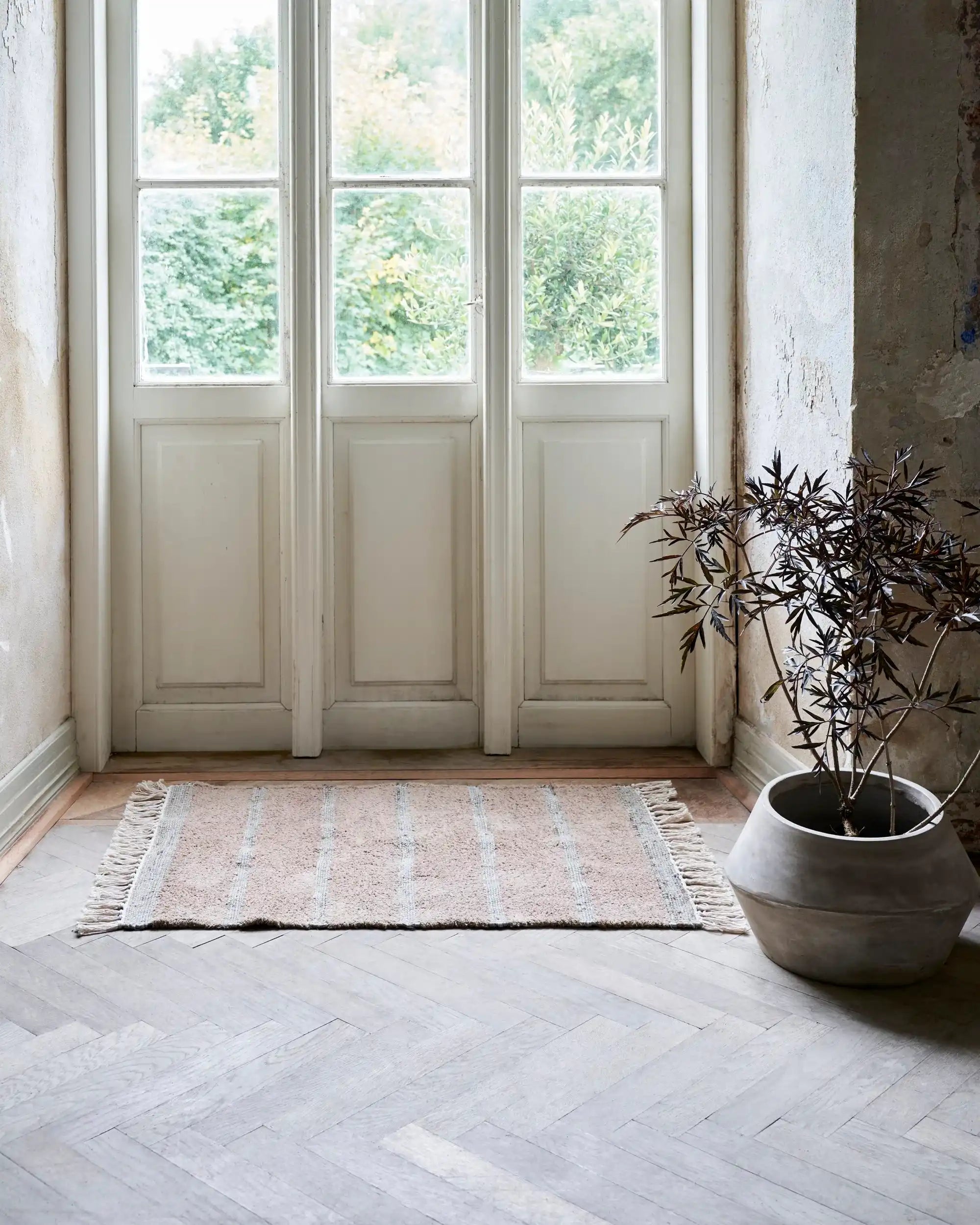 El rico tono rojo baya aporta un sutil acento de color, mientras que el patrón tejido y la combinación de algodón y yute logran un equilibrio perfecto entre suavidad y carácter. Cada alfombra Chen está hecha con esmero y eso se nota. El material natural resulta agradable al tacto y aporta de inmediato una sensación acogedora al hogar.