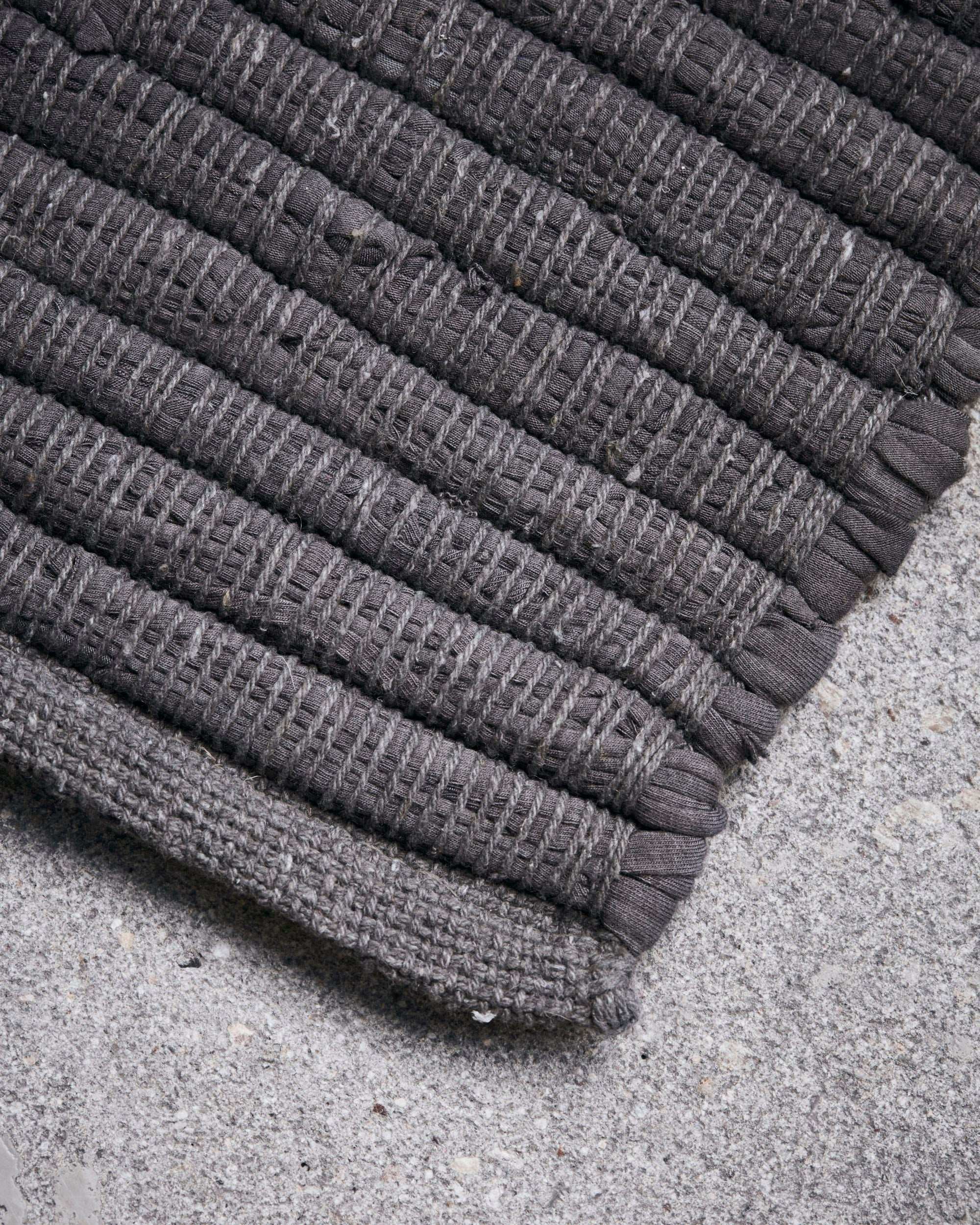 La mezcla de 89% algodón con poliéster, viscosa y acrílico le da a la alfombra un tacto agradablemente suave y la hace duradera en el uso. Los tonos grises jaspeados crean una profundidad tranquila, sin volverse aburridos. La alfombra Chindi aporta un ambiente acogedor, pero también contribuye a un look moderno y cuidado.