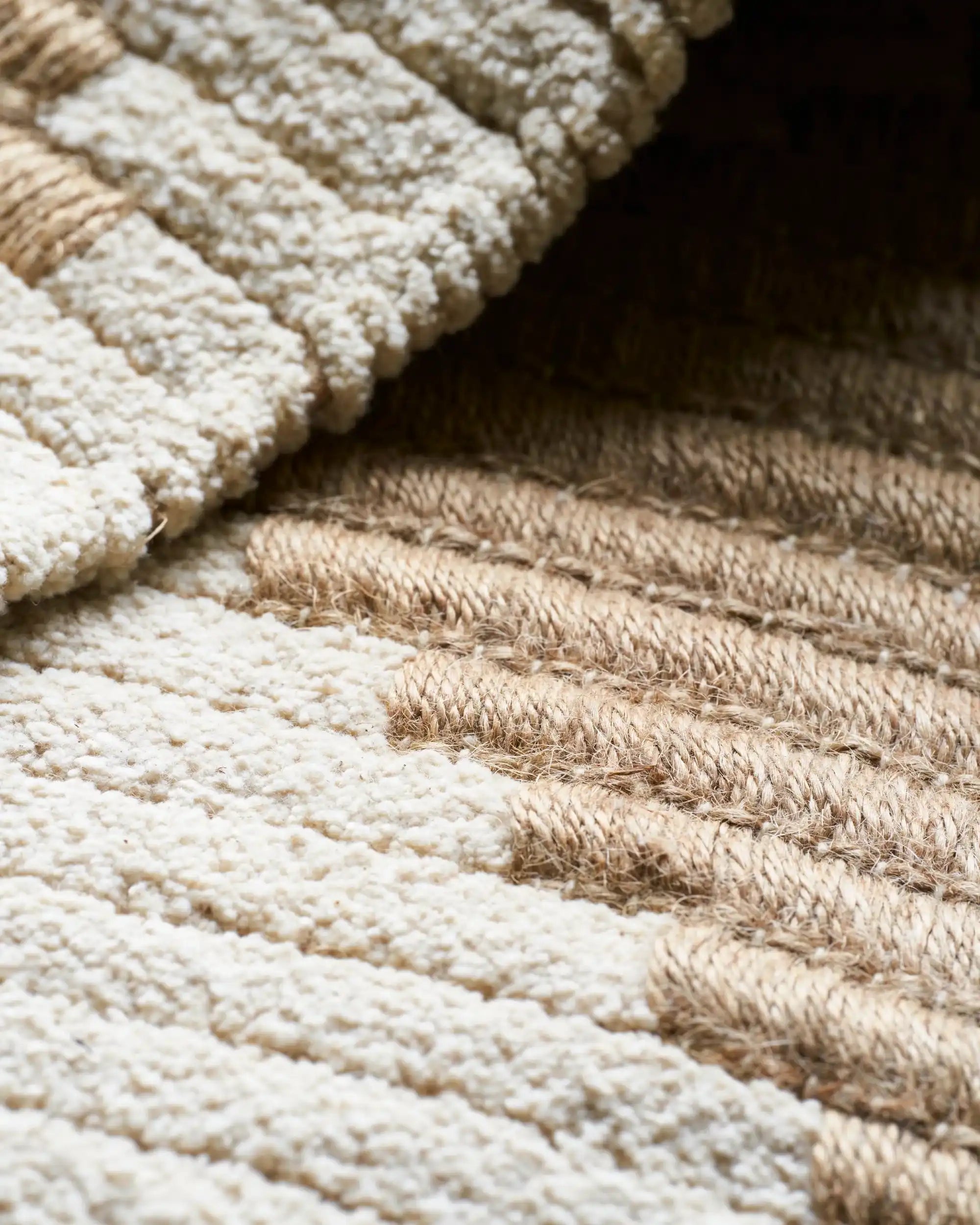 Combina la alfombra Dry con muebles de madera o tejidos de lino para crear un ambiente relajado y natural, perfecto para una mañana tranquila con tu primera taza de café.