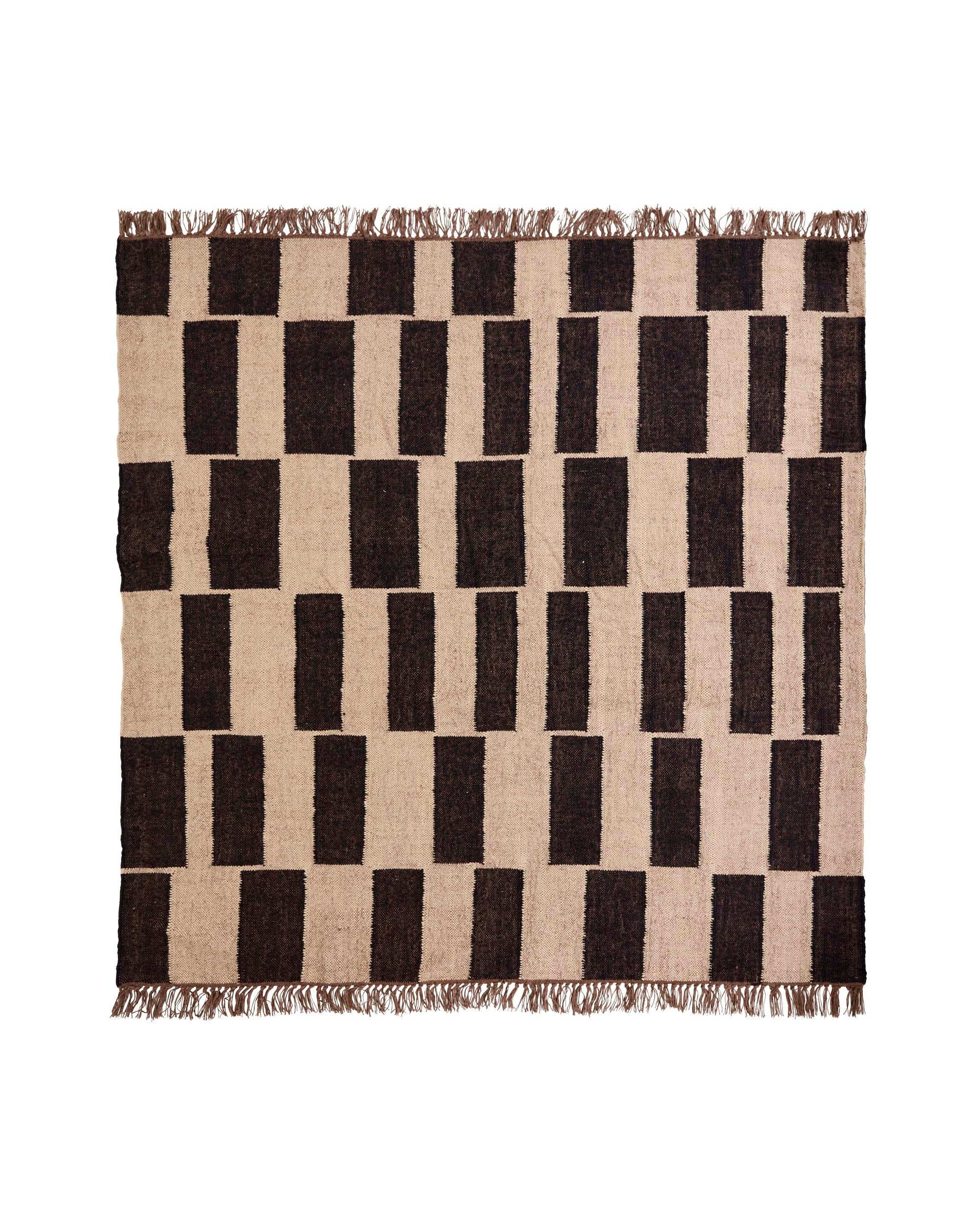 La alfombra tejida a mano está hecha de yute duradero y lana suave. Esta mezcla no solo aporta una textura atractiva, sino que también hace que la alfombra sea apta para el uso diario. El patrón es gráfico sin ser recargado y añade justo ese toque moderno que buscas. Ideal para quienes aman un estilo de vida puro, pensado, con materiales naturales y un ambiente sereno.