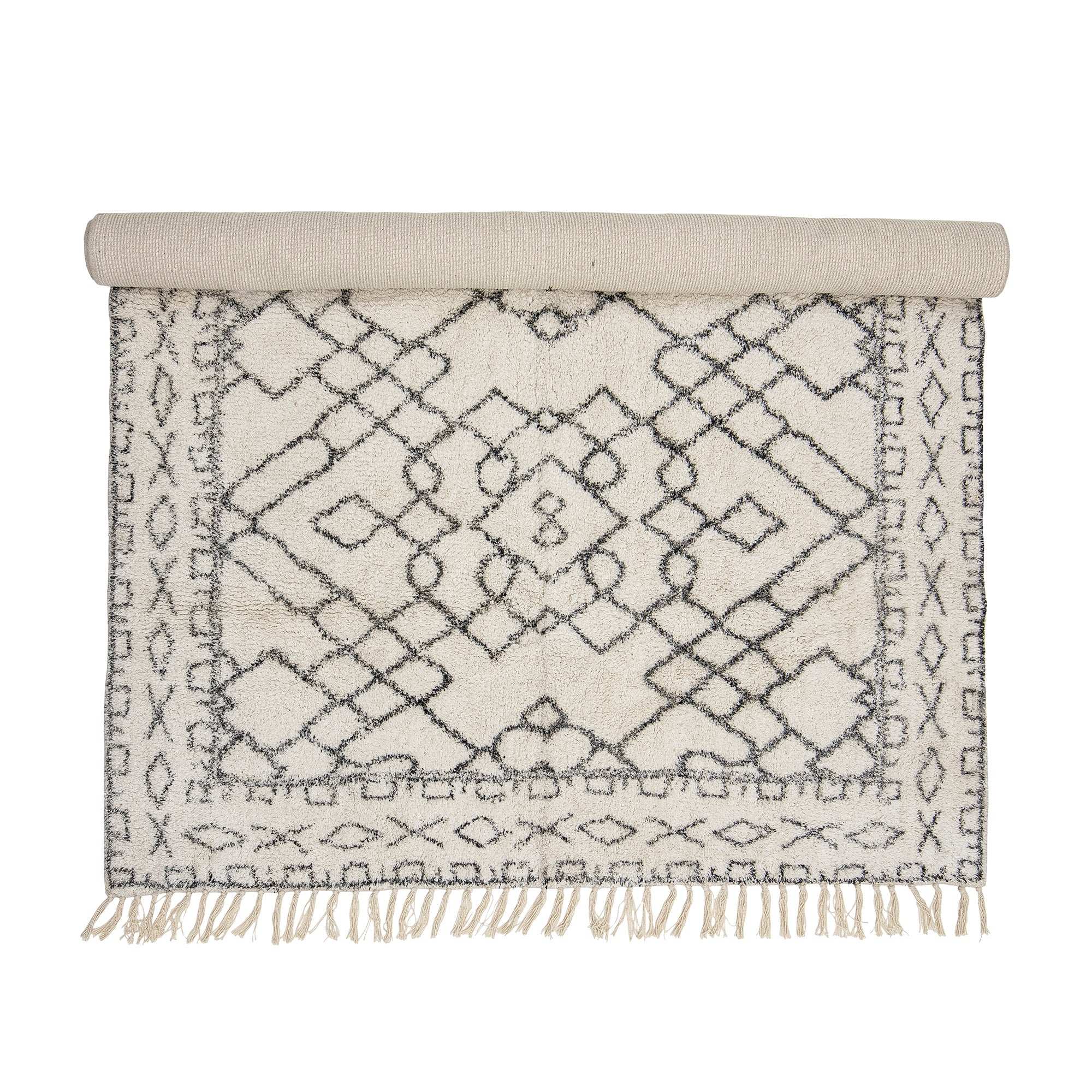 Por qué querrás tener la alfombra de algodón blanca Jaqueline de Bloomingville: Con esta alfombra acogedora le das a tu interior un ambiente cálido y acogedor al instante. La paleta de colores claros y el divertido motivo gráfico crean una base atemporal de la que disfrutarás durante años.