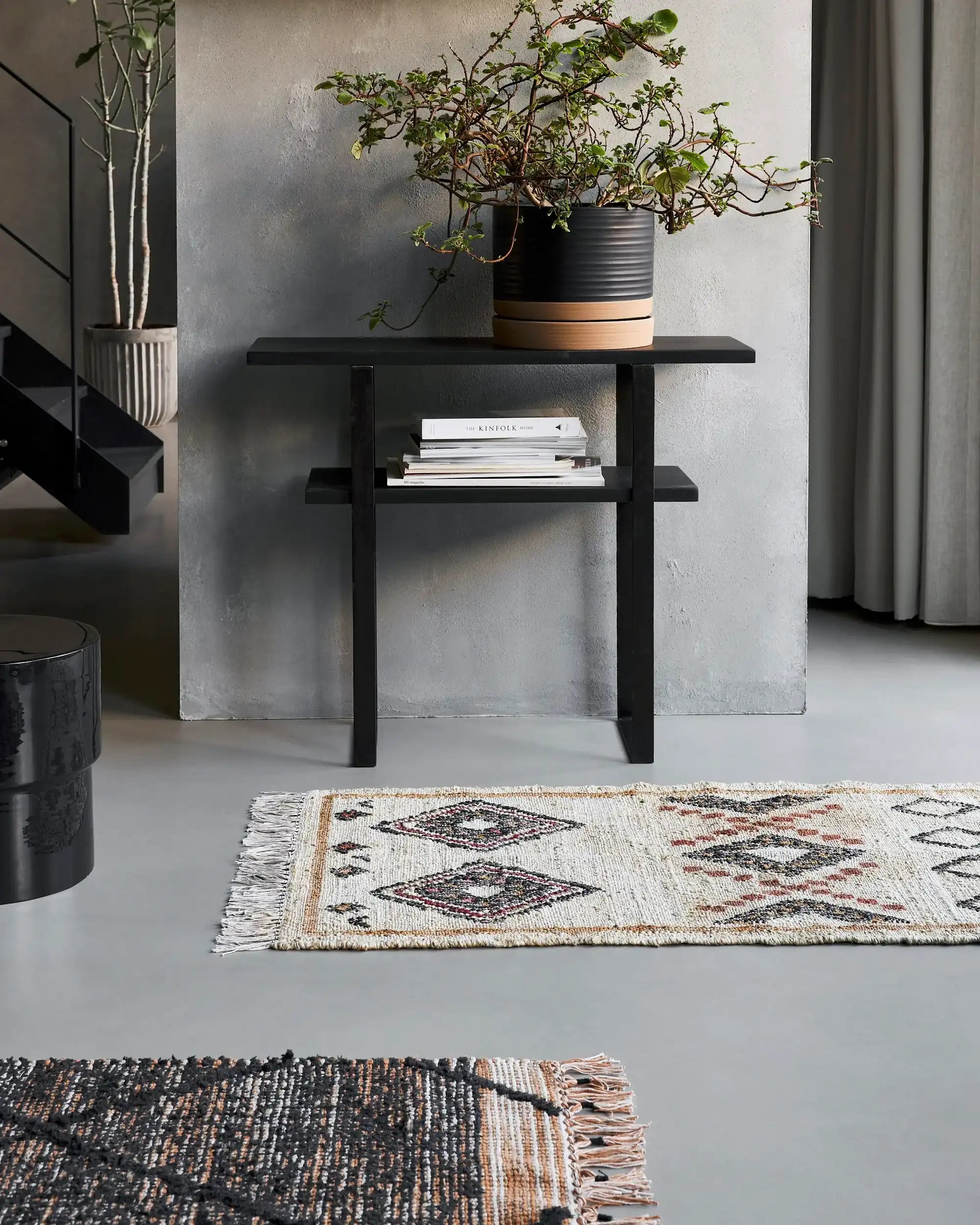 Con la alfombra Kesh en beige, añades fácilmente más calma y textura a tu interior. El formato compacto de 70 x 140 cm la hace ideal para lugares donde la comodidad y el ambiente van de la mano, como en el recibidor, junto a la cama o bajo una mesa auxiliar. Gracias a la estructura tejida a mano de yute natural y un toque de algodón, la alfombra se siente firme, pero luce suave y refinada.