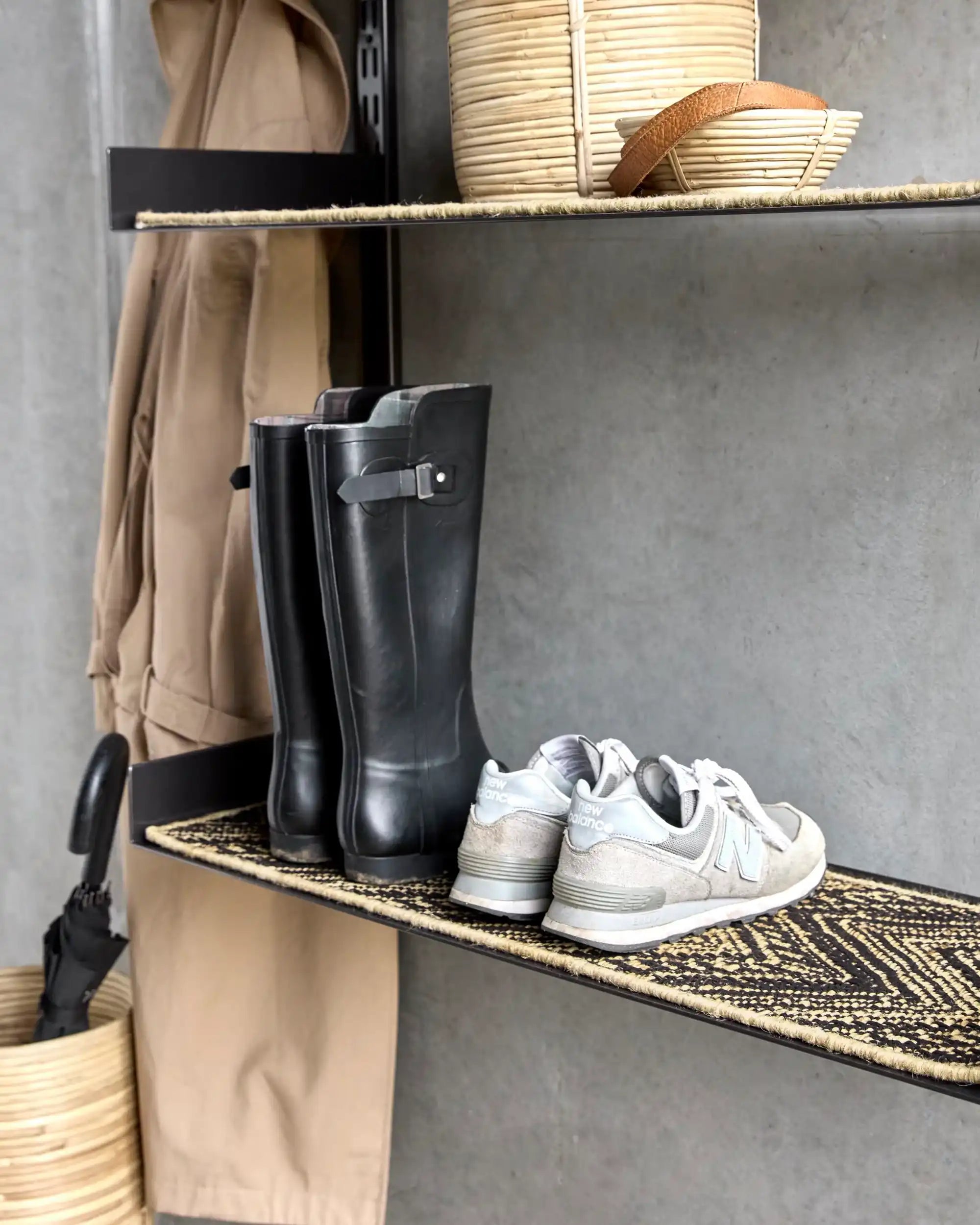 Coloca Monta debajo de un banco en el recibidor o úsalo como base elegante para tu zapatero. Combínalo con materiales naturales como ratán o madera para potenciar su calidez y crear un conjunto equilibrado.