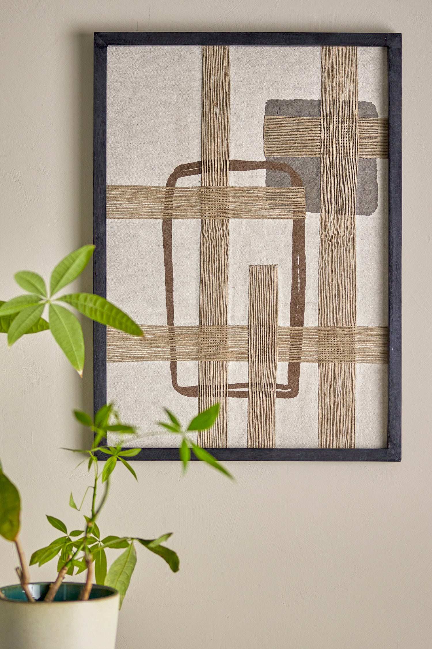Por qué la querrás tener: Haz tu interior más personal con esta elegante decoración de pared de algodón en cálidos tonos marrón y beige. Las formas abstractas y las texturas ricas crean al instante un ambiente especial en tu espacio de vida.