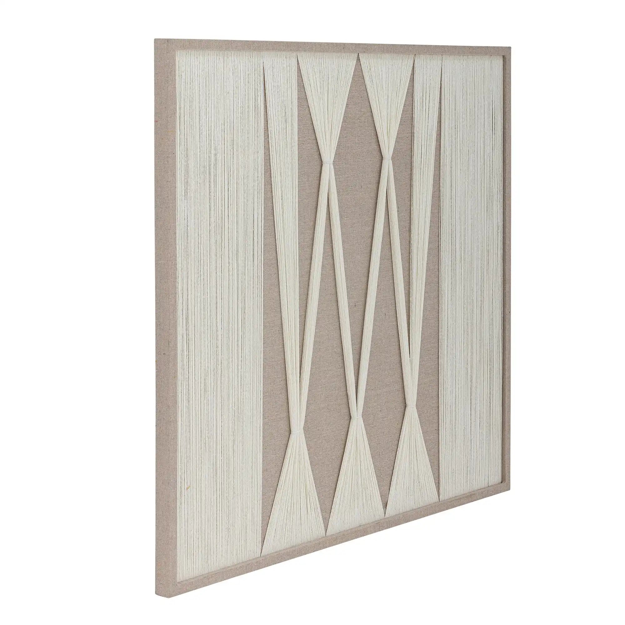 Detalles y material: El diseño elegante consiste en un patrón finamente tejido de algodón, enmarcado por un marco neutro y beige para un aspecto sereno. Con su tamaño de 80 por 80 centímetros y un perfil delgado de 3 centímetros, esta obra de arte se convierte en un verdadero punto focal sin dominar el espacio. El uso de algodón también aporta una textura suave que añade profundidad y tranquilidad a tu hogar.