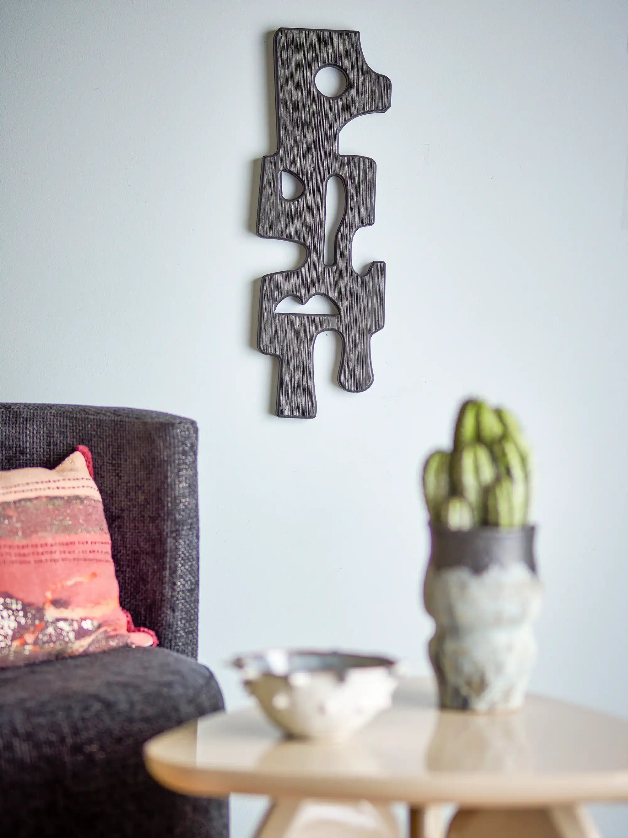 Diseño y material: Fabricada en MDF resistente y acabada en negro intenso, esta decoración tiene una forma recortada y orgánica que encaja perfectamente en un interior escandinavo. Gracias a su tamaño de 58,5 x 20,5 cm (y una profundidad de 2,5 cm), puedes crear fácilmente un toque gráfico, tanto sola como en una pared tipo galería.
