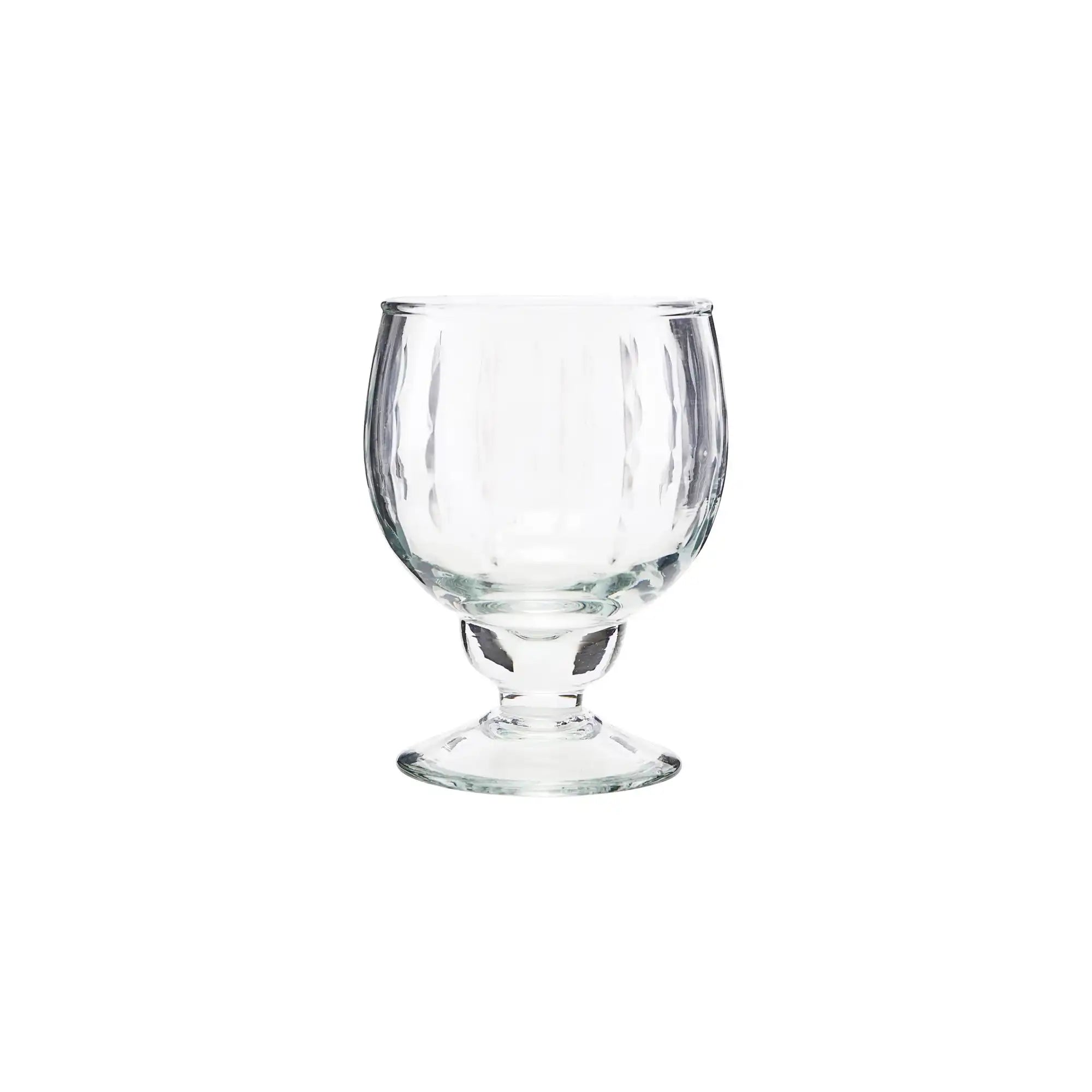 La copa está hecha de vidrio transparente y tiene una altura de 12 cm y un diámetro de 7,5 cm. Gracias a su diseño robusto, se adapta cómodamente a la mano y aporta un toque clásico tanto a presentaciones de mesa modernas como eclécticas.