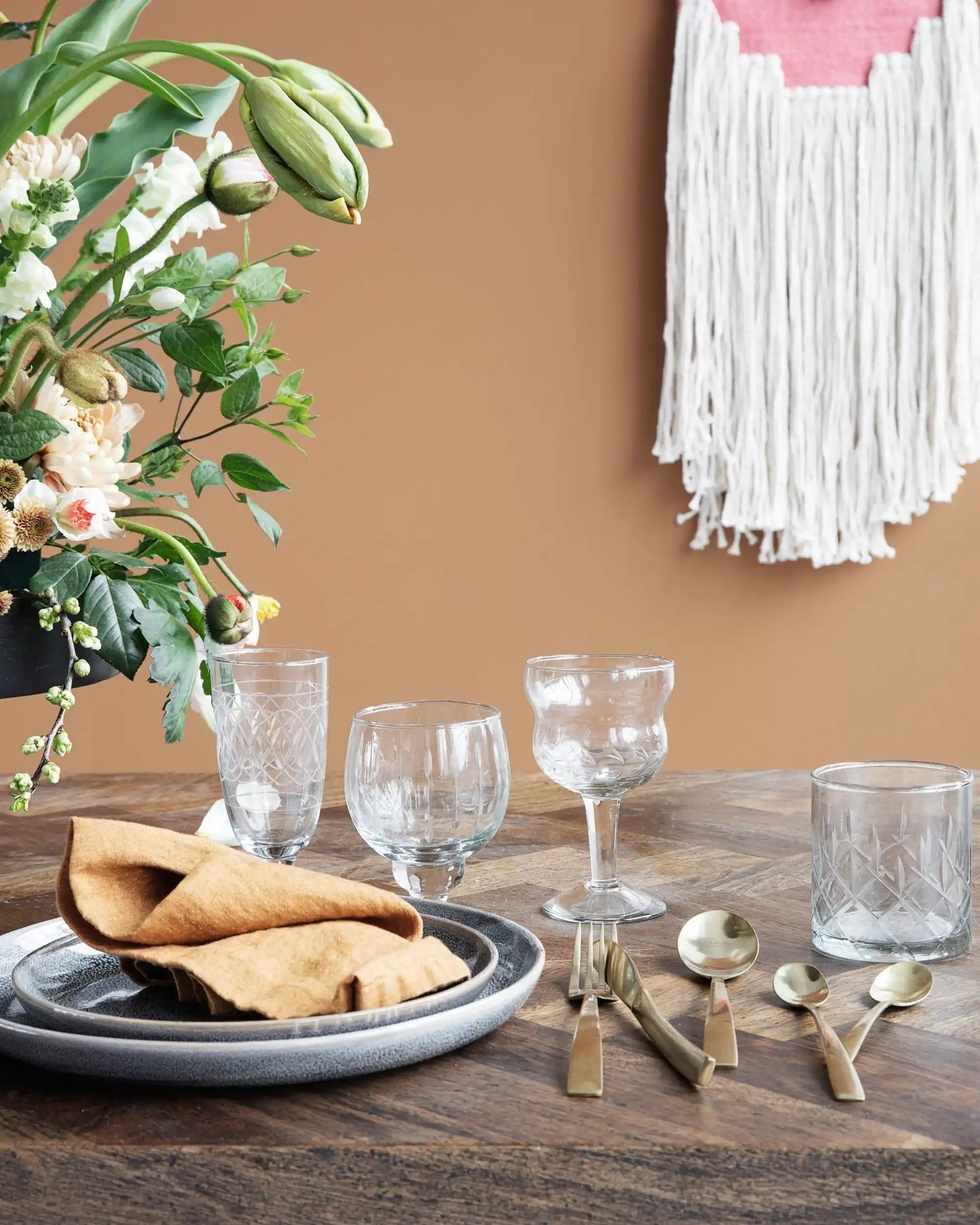 Consejo de uso: Combina esta copa de vino con otros vasos de diferentes texturas o tonos para una disposición de mesa divertida y personal que hará especial cualquier ocasión.
