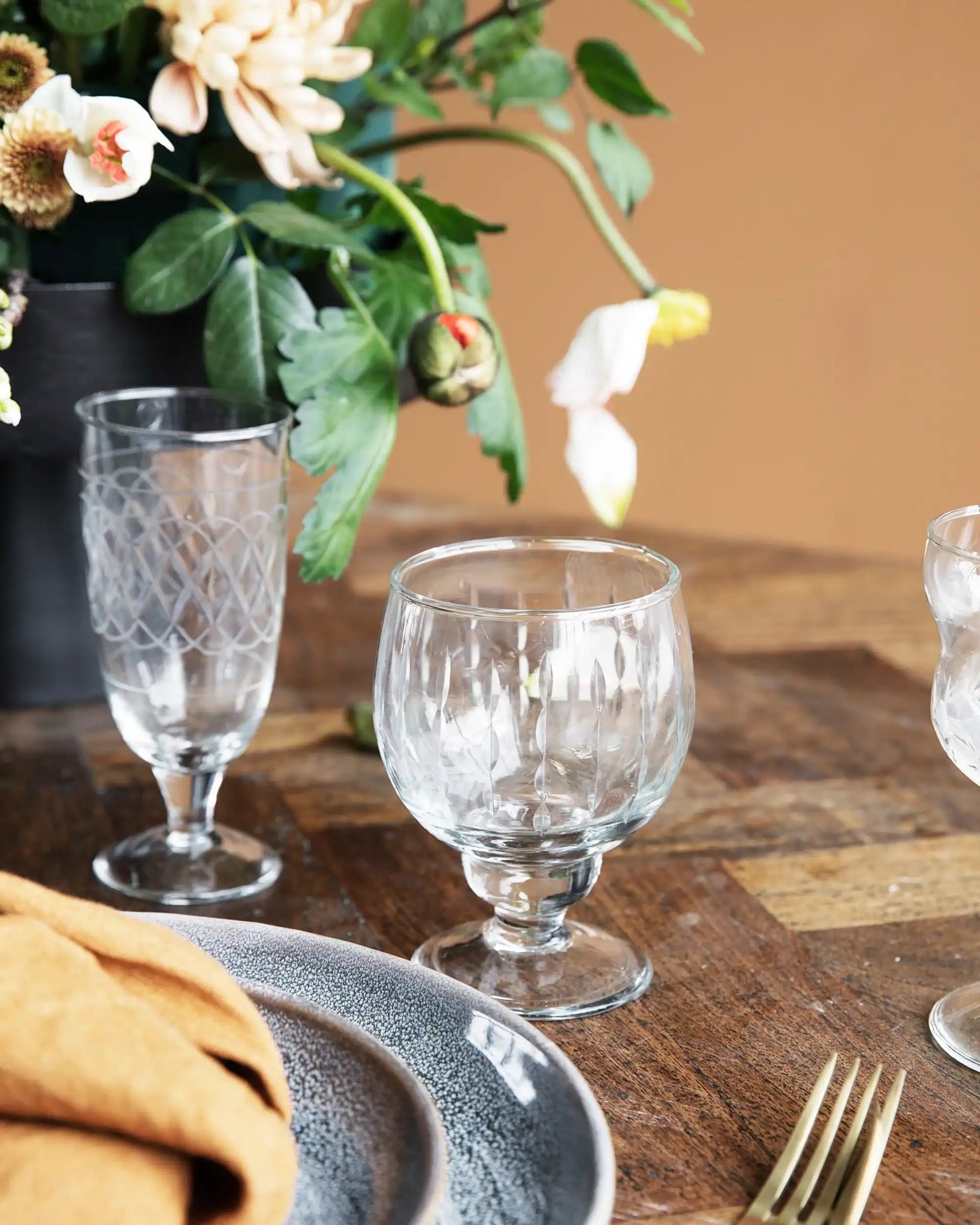 Una sutil mezcla de elegancia y nostalgia: esta copa de vino blanco de la serie Vintage añade carácter a cada momento en la mesa. El tallo corto y el delicado relieve le dan un aspecto encantador y atemporal, perfecto para cenas con estilo o relajadas reuniones veraniegas.