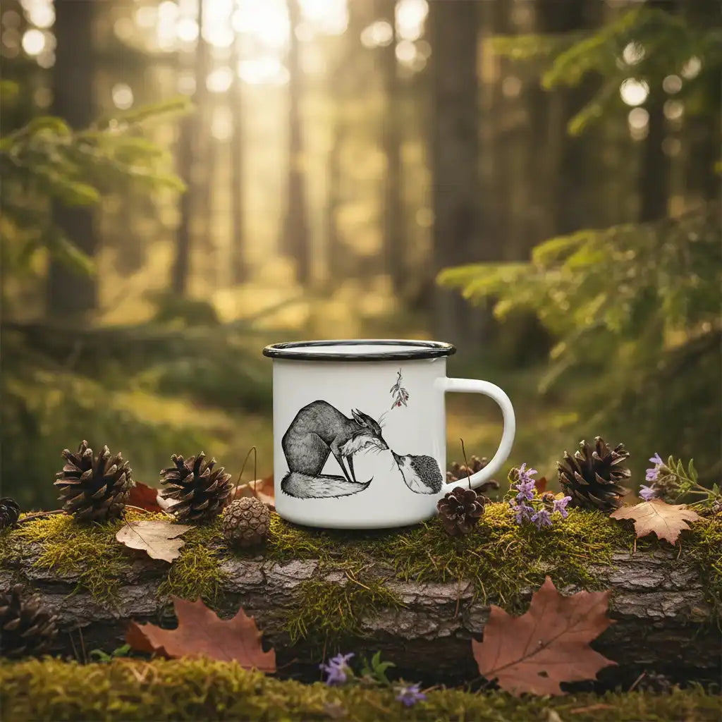 Käsintehty emalimuki Kettu ja Siili 300ml