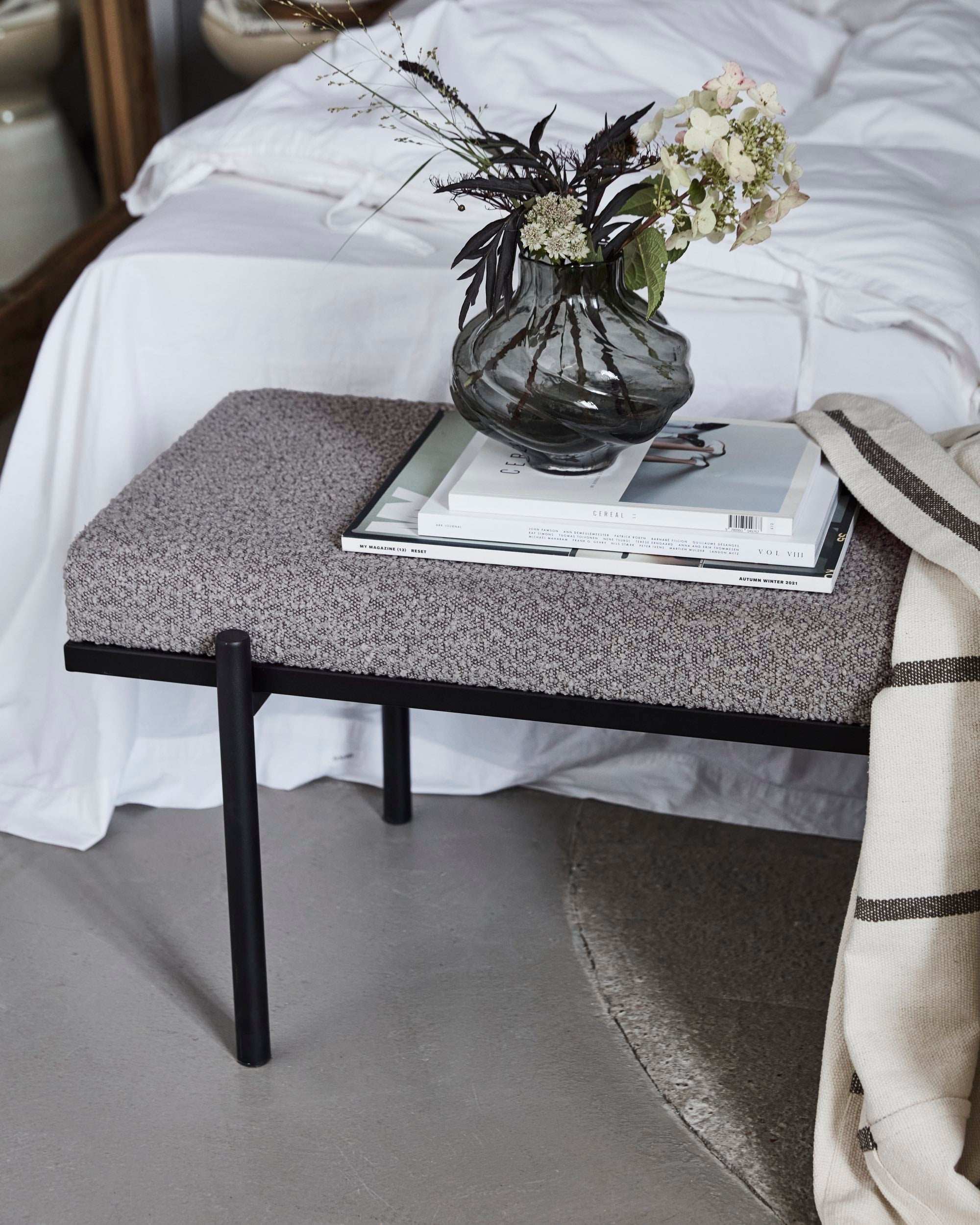 Tu veux une pièce subtile qui apporte ce petit plus à ton intérieur ? Le House Doctor Bank Lao le fait sans effort. Avec son élégant tissu bouclé dans une teinte brun/gris chaleureuse et son cadre en acier noir audacieux, il allie confort et caractère. Ce canapé est un vrai caméléon à la maison : parfait au pied du lit, comme assise pratique dans l’entrée ou comme siège d’appoint stylé à la table à manger.