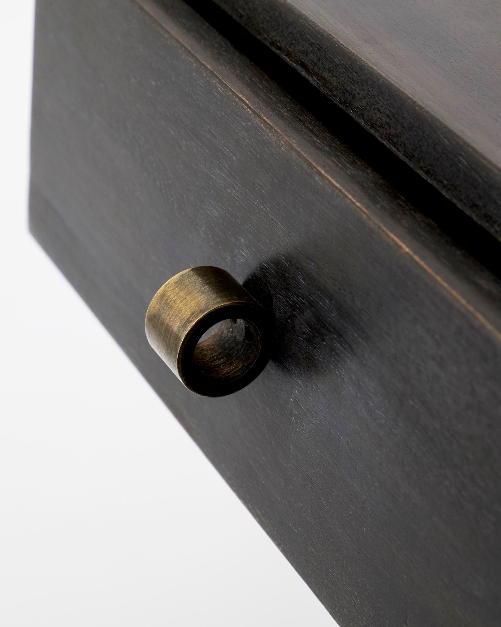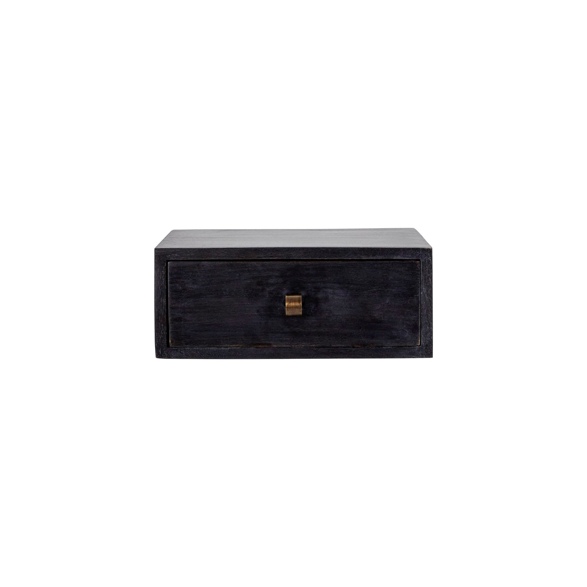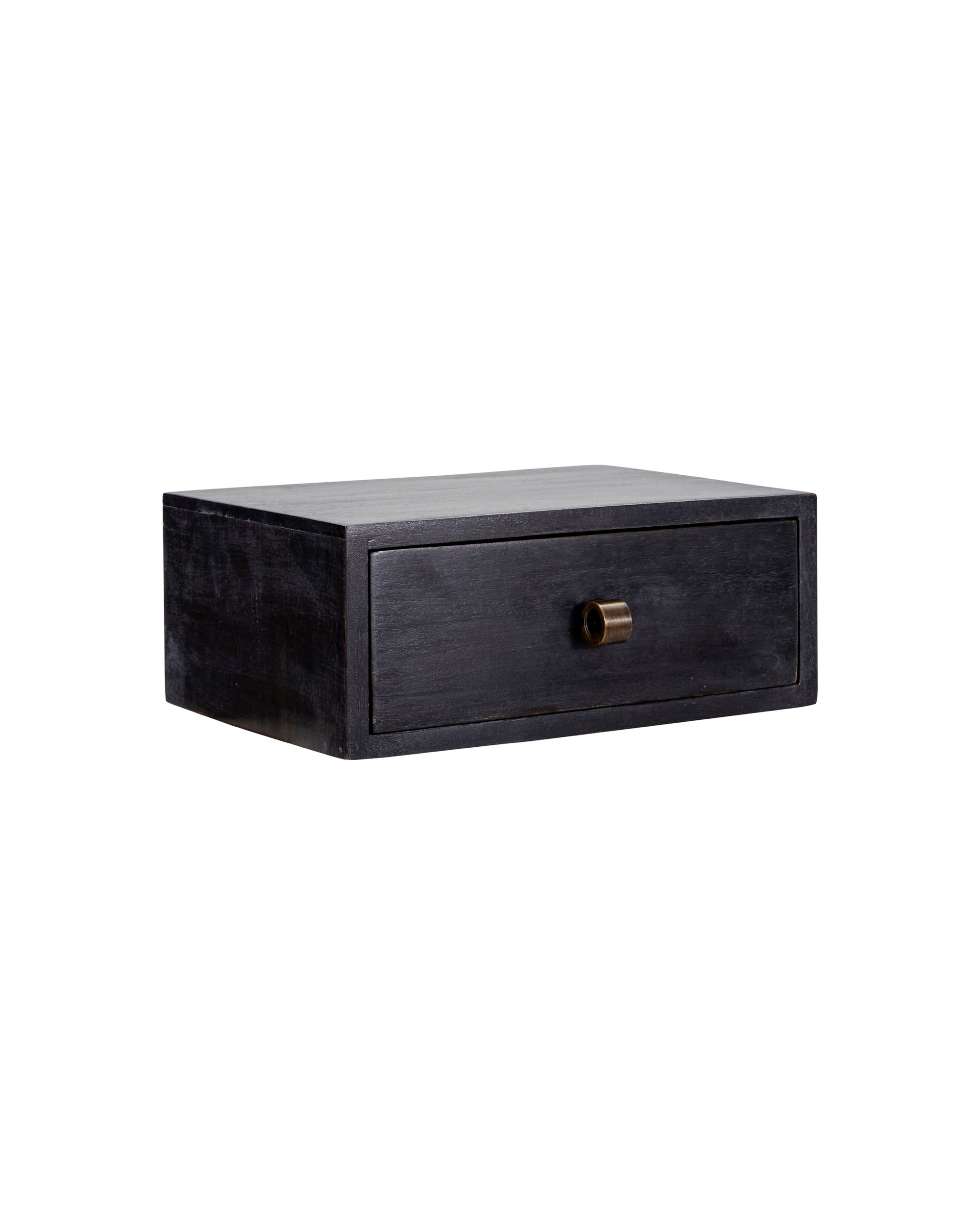 Le design est réalisé en bois de manguier robuste et fini dans une teinte noire profonde. Avec ses lignes épurées et sa texture chaleureuse, Bedsi apporte une touche raffinée à chaque mur. La table mesure 35 cm de large, 14 cm de haut et 25 cm de profondeur. Grâce à ses dimensions compactes et son design mural, ton sol reste dégagé et spacieux, tout en offrant un espace de rangement supplémentaire. Le tiroir intégré est idéal pour les petits objets que tu veux garder à portée de main.