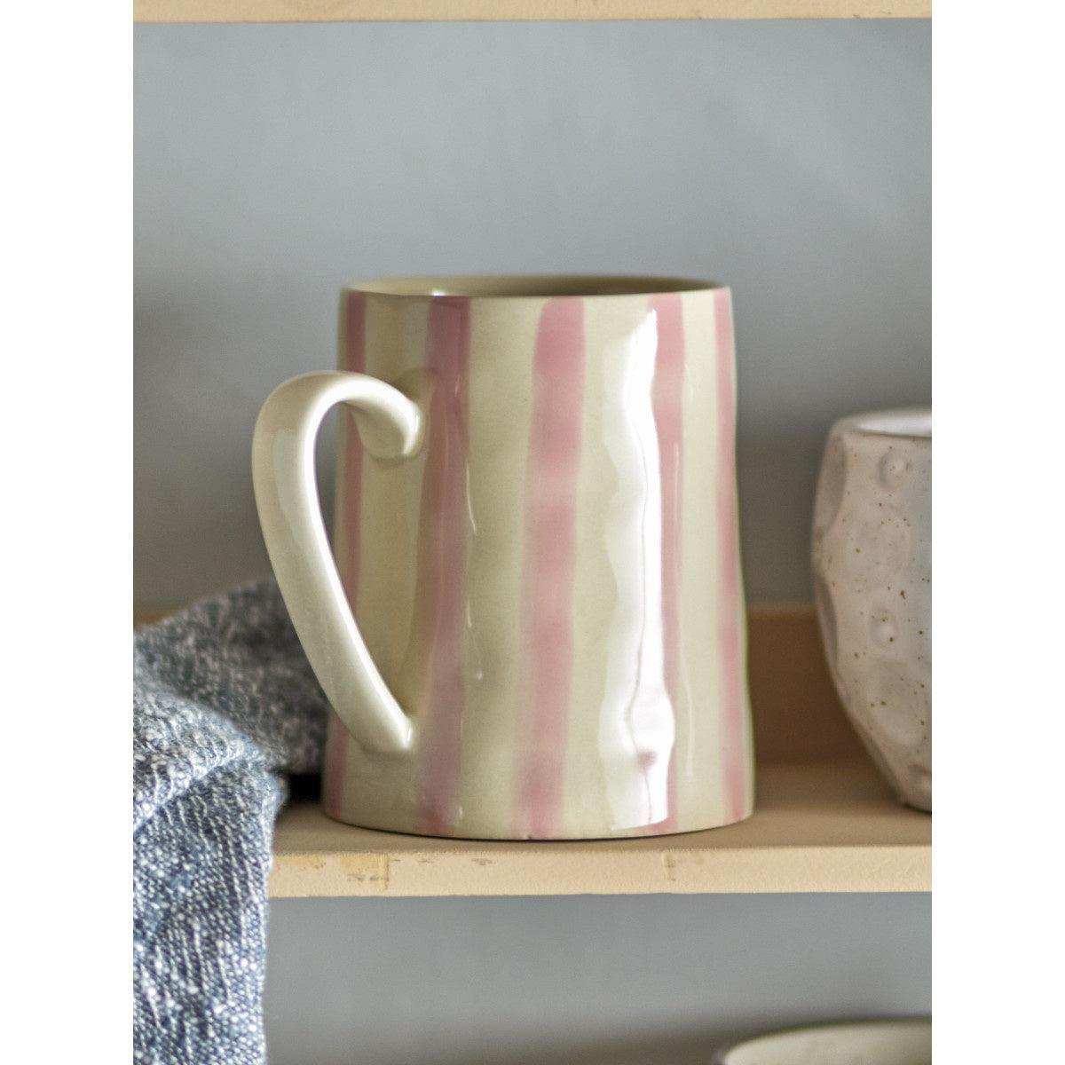Apporte une touche de douceur à ta journée avec la tasse Bloomingville Begonia dans une teinte rose sereine. Cette tasse, avec une généreuse capacité de 440 ml et des dimensions de D9xH11 cm, est le choix parfait pour ceux qui souhaitent enrichir leur moment café ou thé avec autant de saveur que de style. Fabriquée en grès durable et ornée d'un motif rayé peint à la main dans un rose poudré, chaque tasse Begonia offre un charme unique et une touche personnelle à ta collection de vaisselle. De plus, cette tasse est conçue pour te simplifier la vie : elle passe au lave-vaisselle, au four et au micro-ondes.