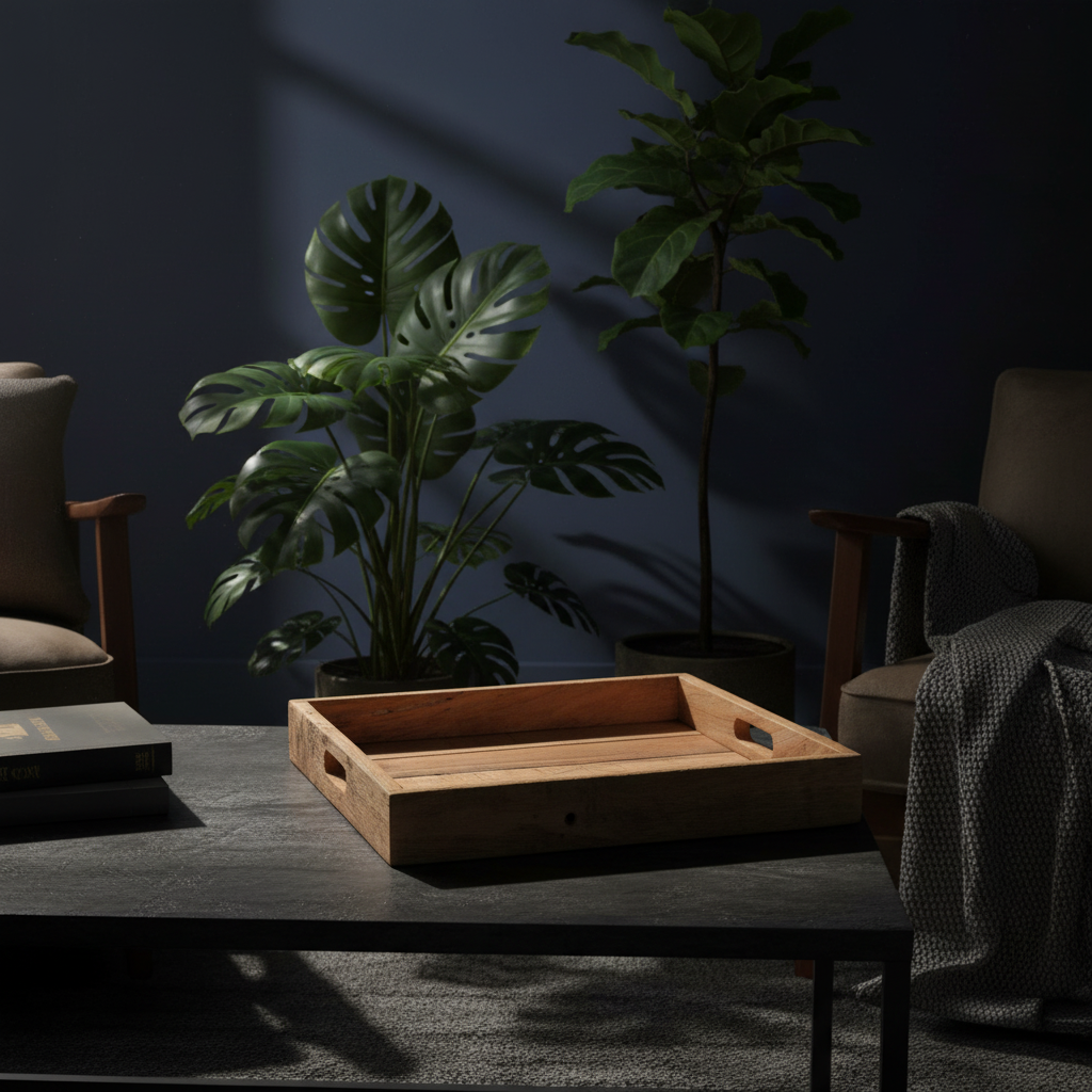 Chaque plateau est unique — la structure du bois, les veines et les petites imperfections confèrent à chaque pièce un caractère vivant et authentique. Idéal comme plateau de service pour le café, le thé ou le petit-déjeuner au lit, mais tout aussi élégant en plateau décoratif avec des bougies, des petits vases ou d’autres objets d’ambiance.