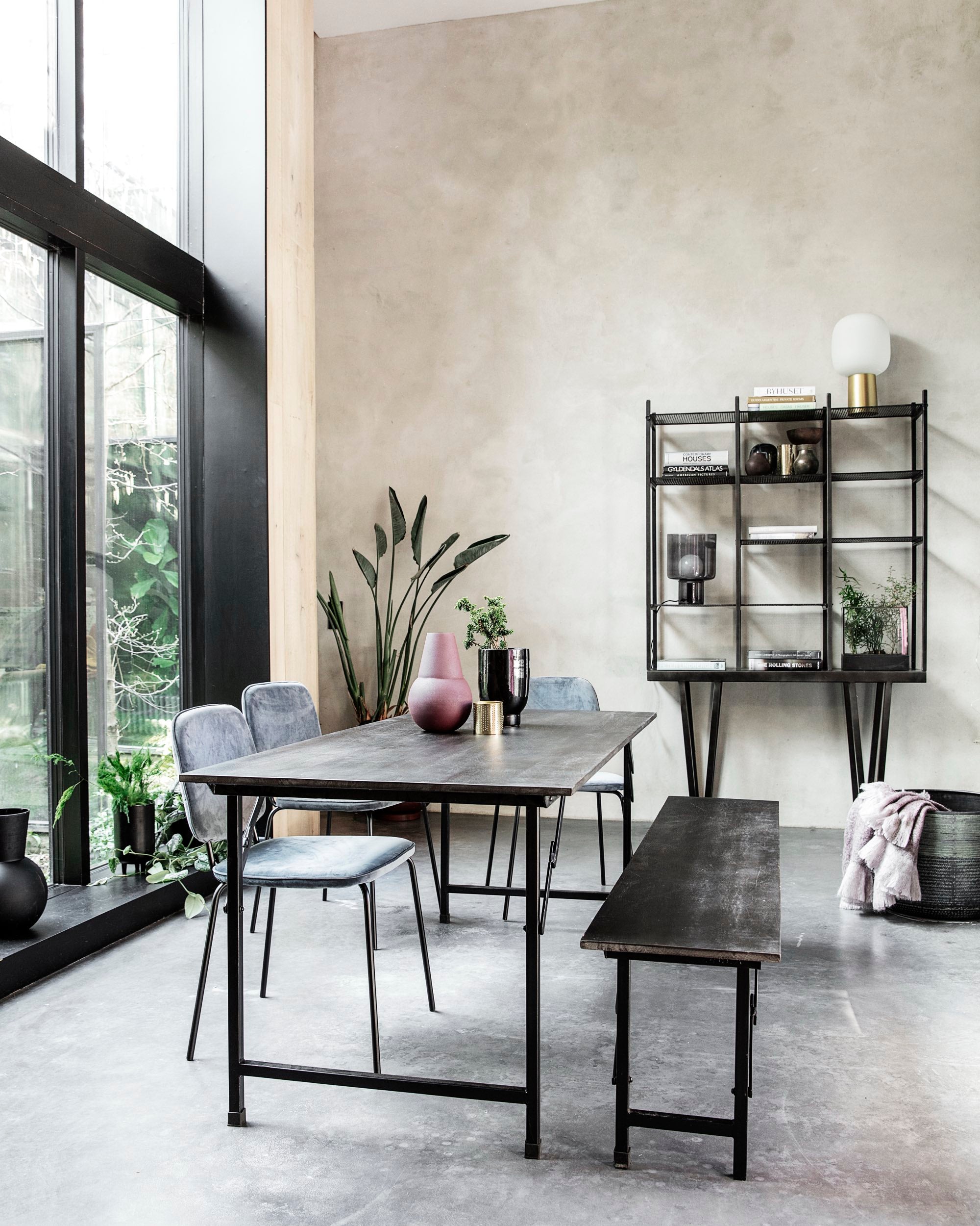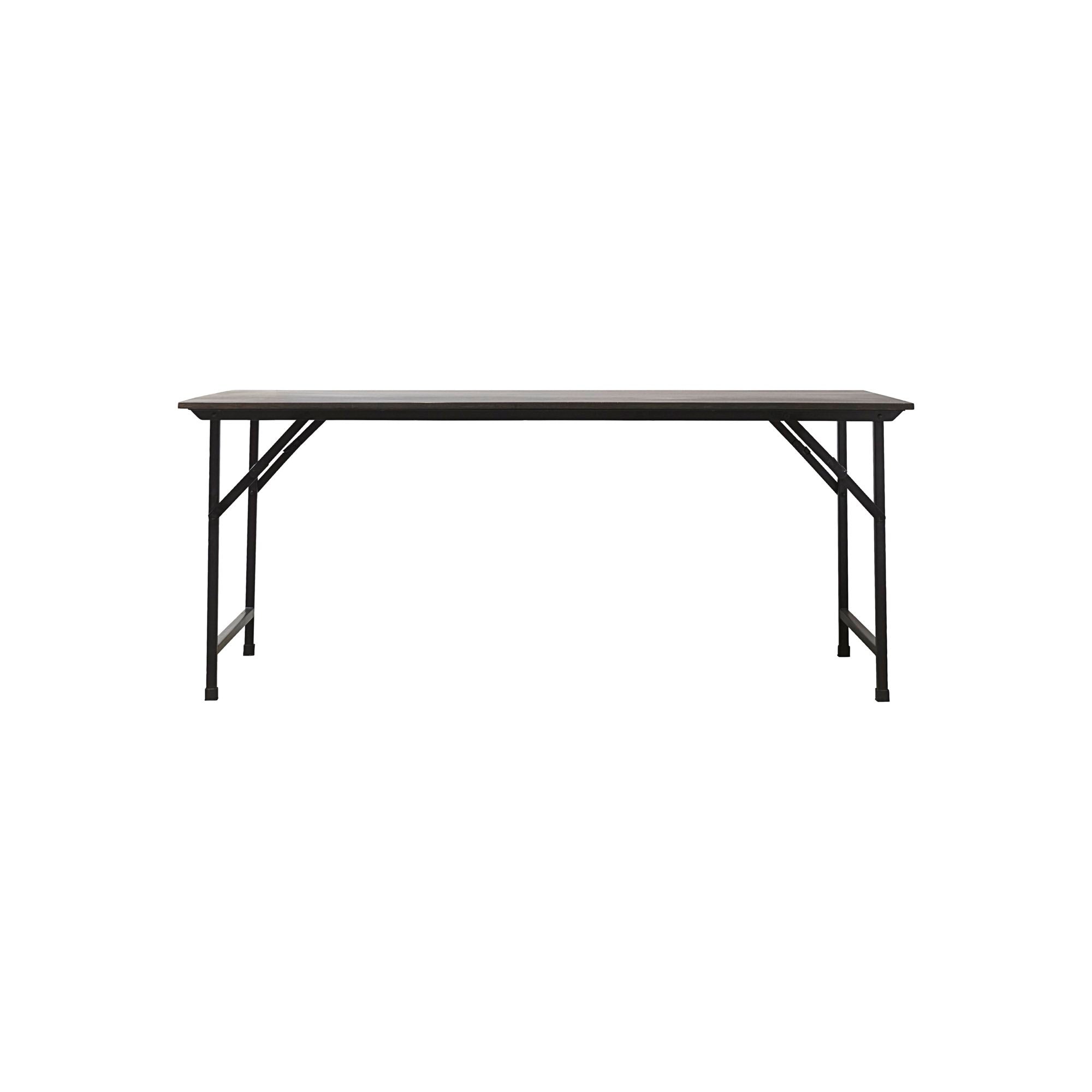 Le plateau est en bois de manguier noir, offrant une base chaleureuse et solide. Le piètement en fer apporte une touche robuste et une stabilité supplémentaire. Party mesure 180 cm de long, 80 cm de large et 74 cm de haut — suffisamment spacieuse pour six personnes, tout en restant compacte à ranger grâce à son design pliable.