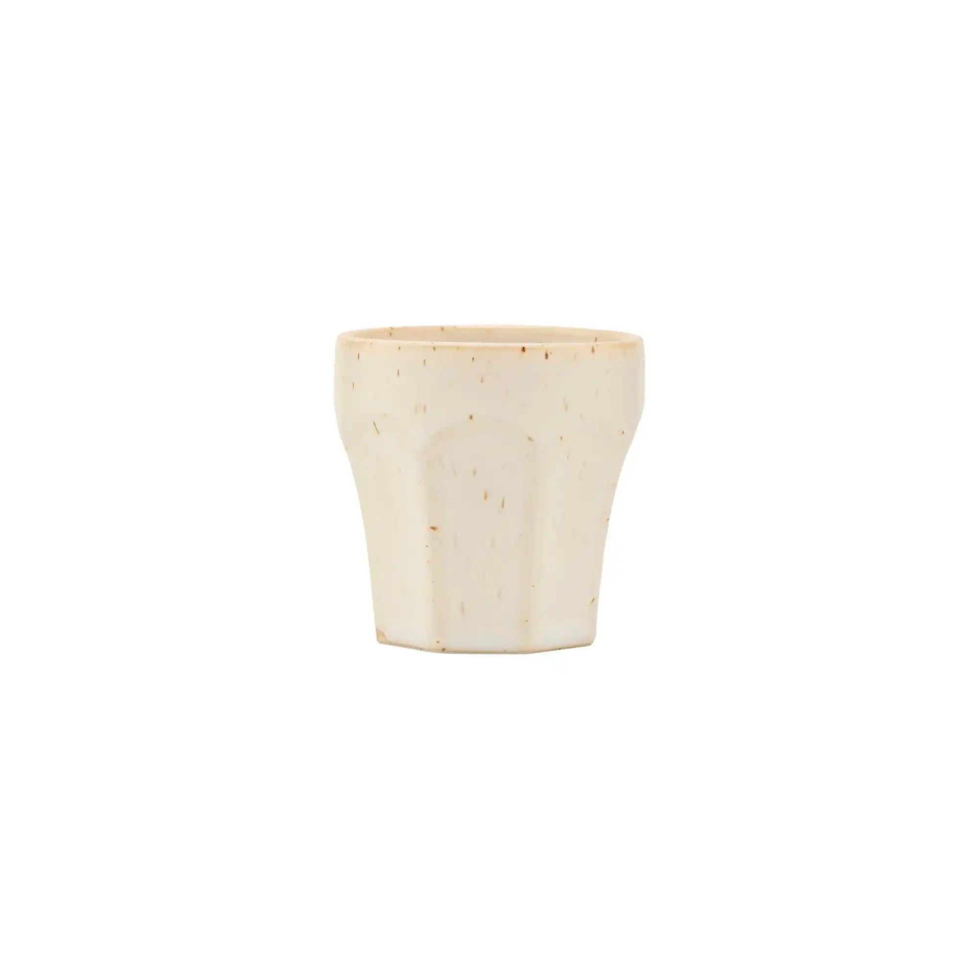 Berica est fabriquée en grès beige et finie avec un émail subtilement moucheté. L'extérieur rainuré apporte du caractère et une bonne prise en main, tandis que l'absence d'anse offre un look moderne et épuré. La tasse mesure 6,3 cm de haut et a un diamètre de 6,2 cm — parfait pour une dose concentrée de caféine.