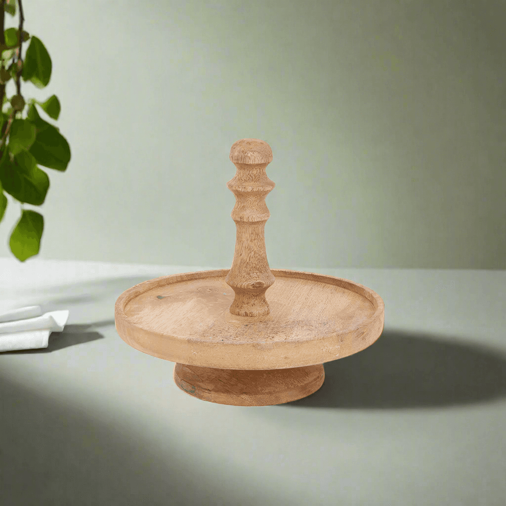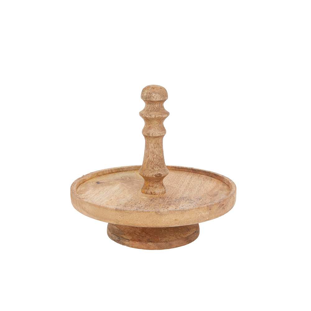 Avec son format compact de 17 cm de haut et 18 cm de diamètre, ce plateau à un seul niveau est parfait pour égayer ce petit coin. Pose ta plus belle bougie parfumée, une petite plante ou sers-y quelques chocolats ou biscuits. Pratique aussi dans la cuisine comme support pour tes bouteilles d'huile et d'épices, ou sur la table avec une cloche par-dessus.