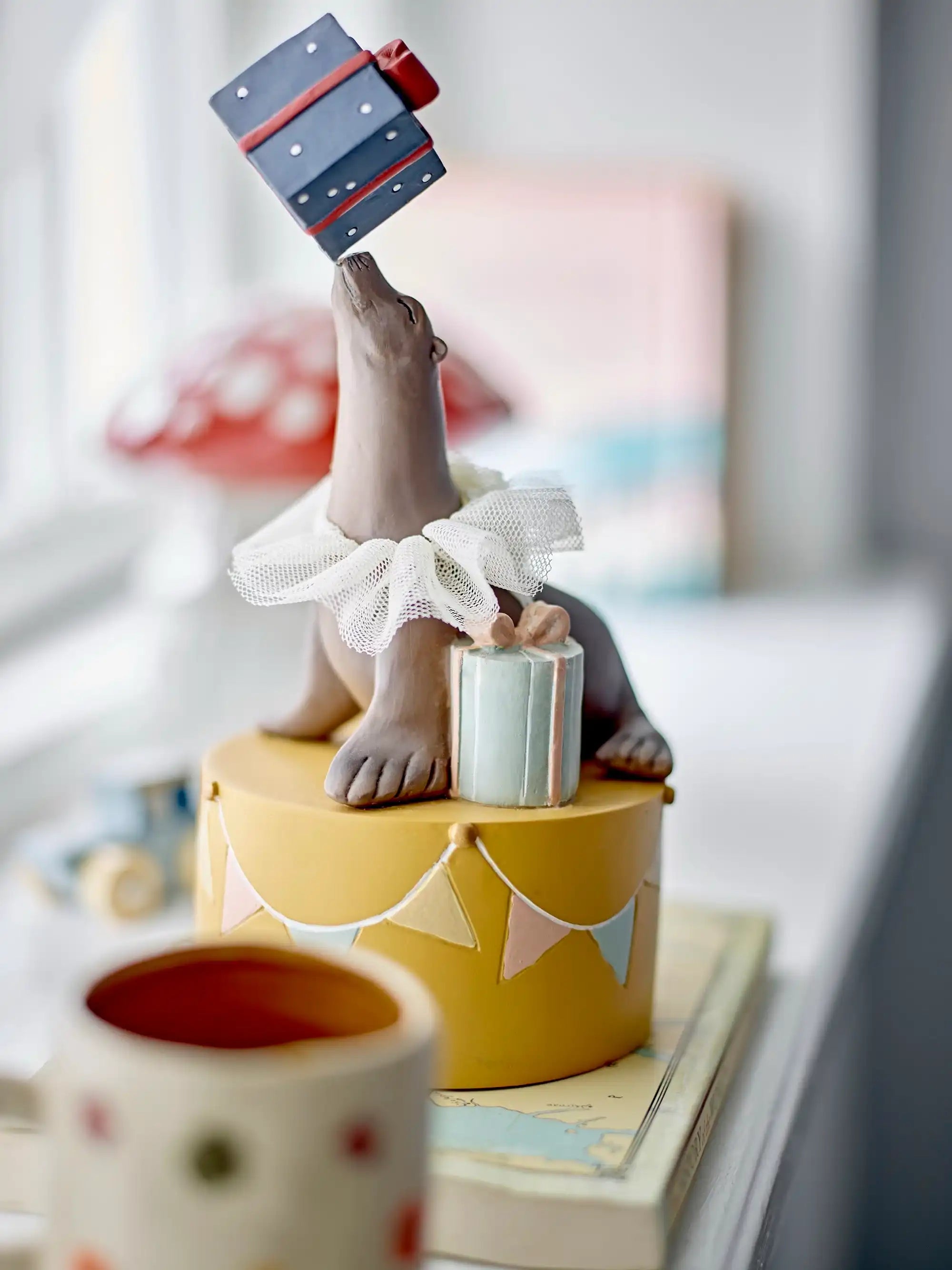 Pourquoi tu veux ce bougeoir de Bloomingville MINI : Célèbre chaque fête avec le sourire ! Le bougeoir Flor met en scène une otarie fière qui équilibre un cadeau et porte un col en tissu coloré. Ce bougeoir joyeux crée une ambiance festive à chaque anniversaire. Il est toujours aussi amusant à poser sur la table et accompagne ton enfant au fil des années.
