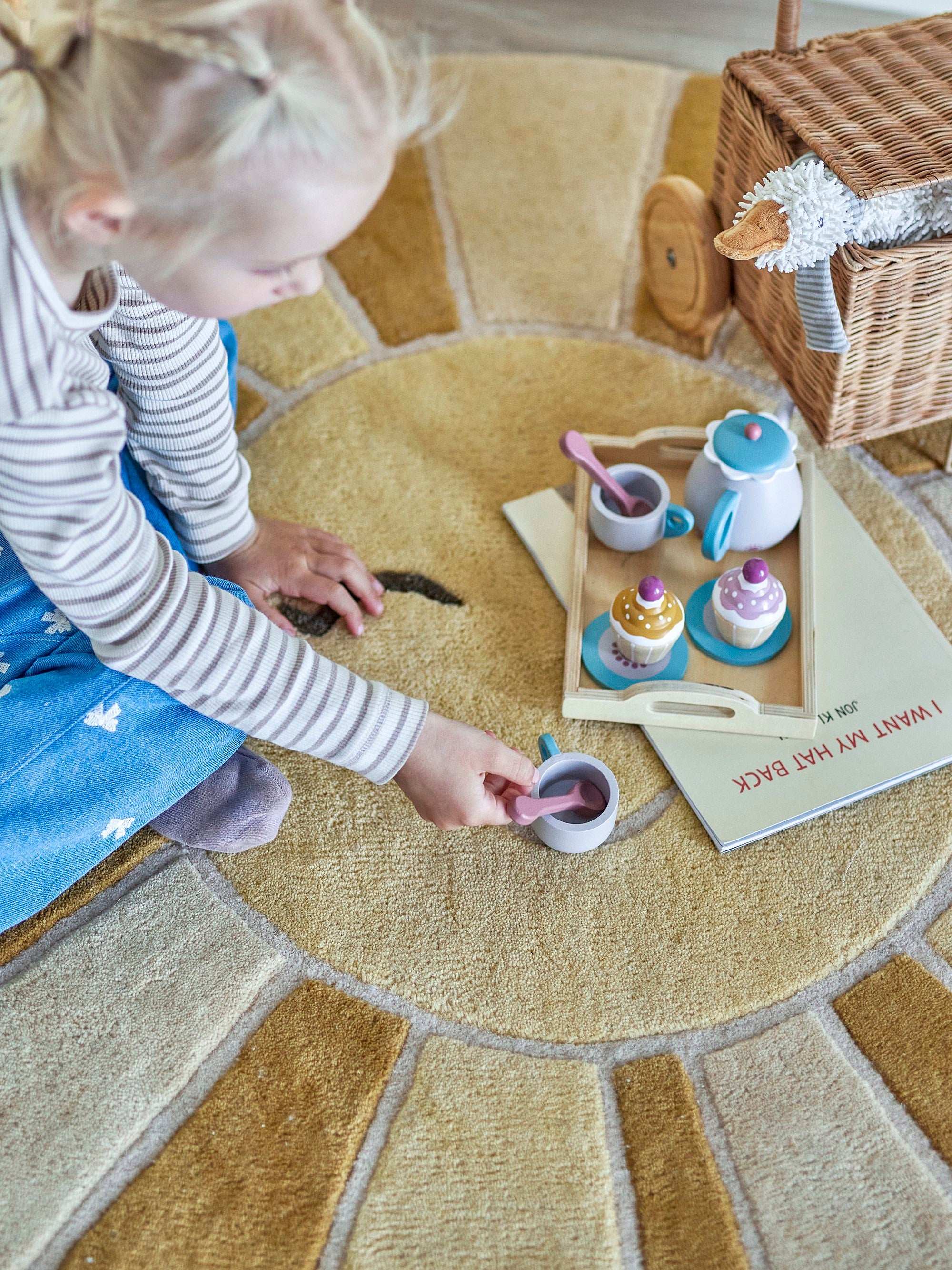 Astuce d’utilisation : Pose le plateau sur une table basse ou dans la petite cuisine en jouet et laisse les enfants servir le thé eux-mêmes. Ajoute une petite nappe ou un plateau à gâteaux en bois pour encore plus de convivialité. Après le jeu, range tout soigneusement dans la jolie boîte. Ainsi, chaque moment du thé reste spécial.
