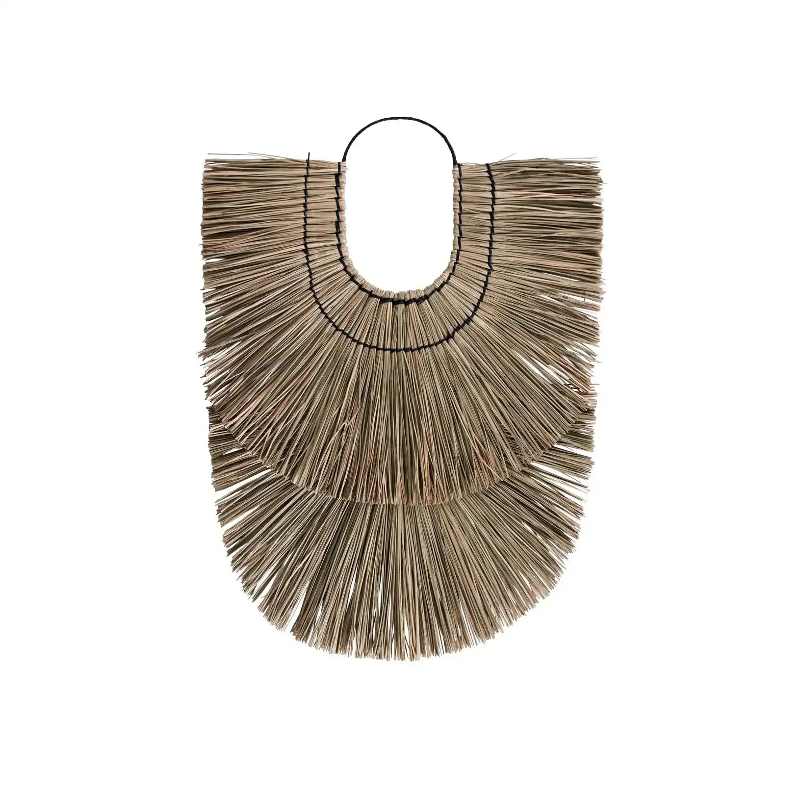 Grande décoration murale en herbe de mer, teinte naturelle, 74cm