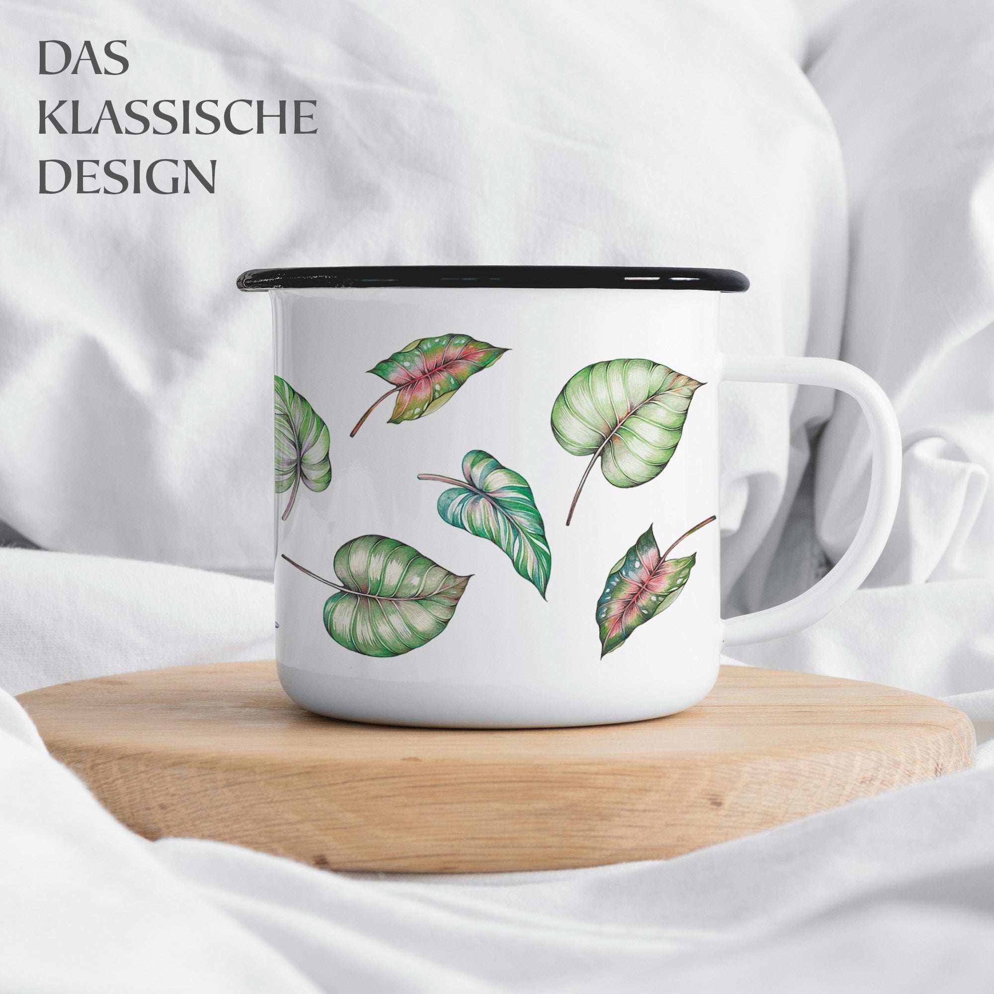 Tasse émaillée faite main feuilles 300ml