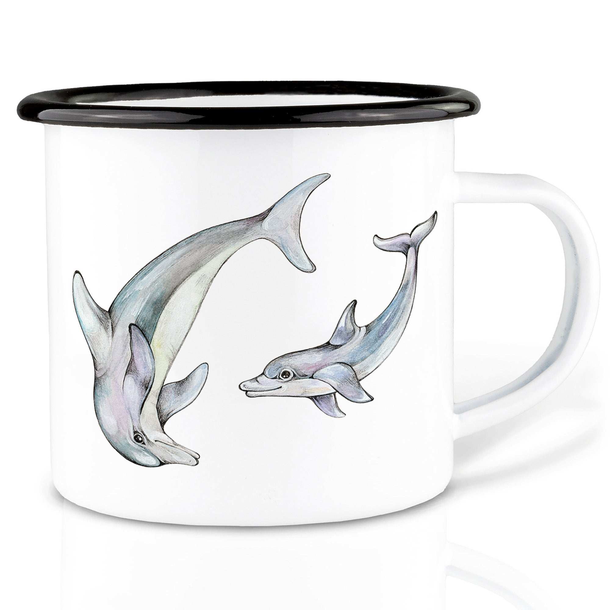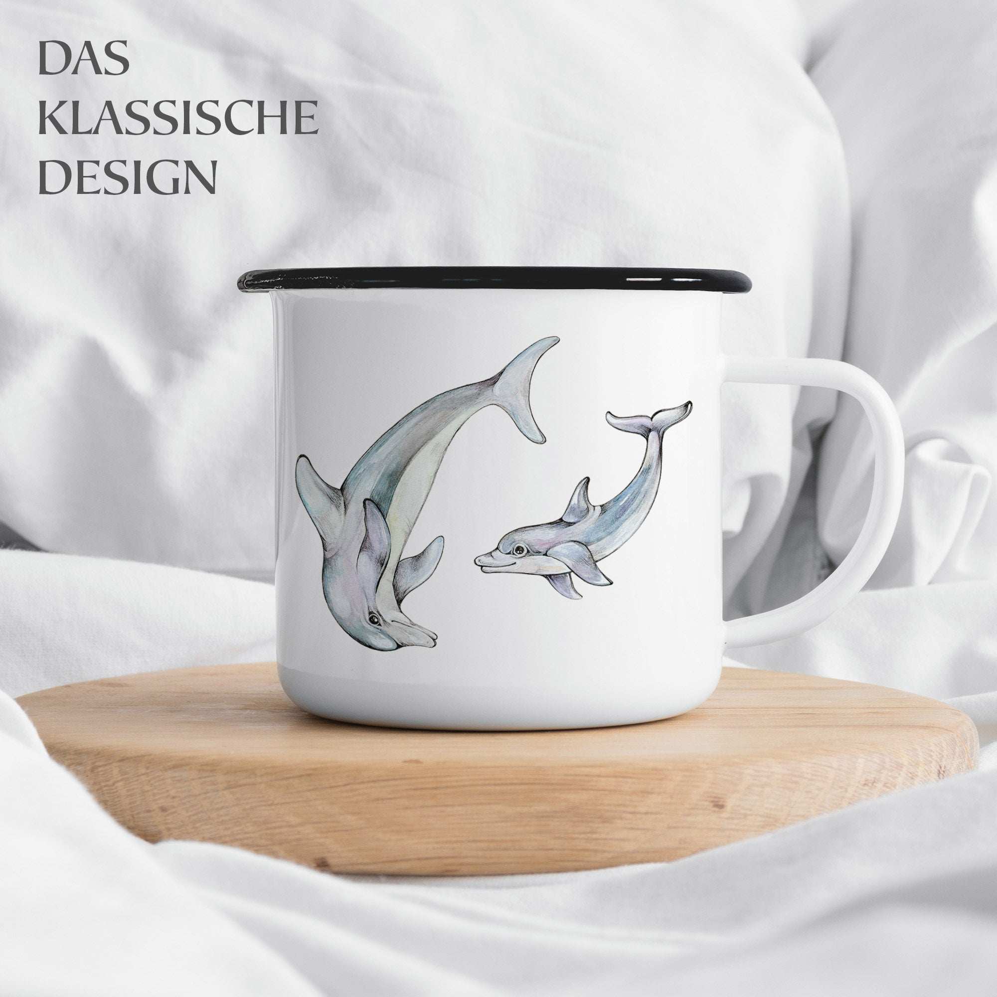 Cette tasse est imprimée à la main en Allemagne et fabriquée en émail de haute qualité. L’association de l’illustration délicate et du métal blanc bordé de noir lui donne un style frais et intemporel. Avec 300 ml de contenance, elle est idéale pour le café, le thé ou le chocolat chaud – que tu sois à la maison, à la plage ou en déplacement.