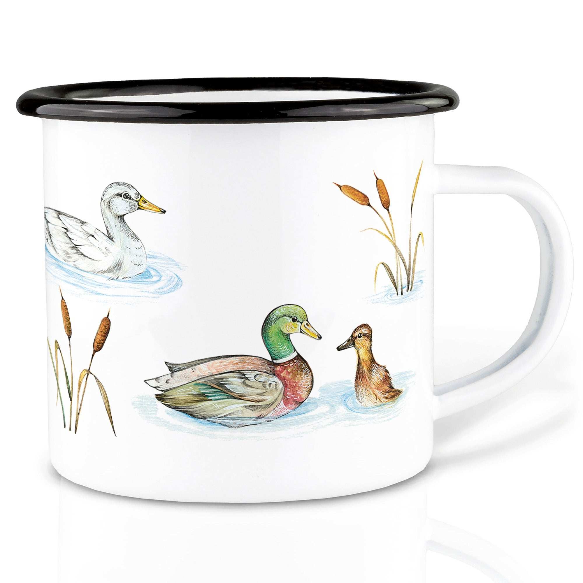 Tasse émaillée faite main étang aux canards 300ml