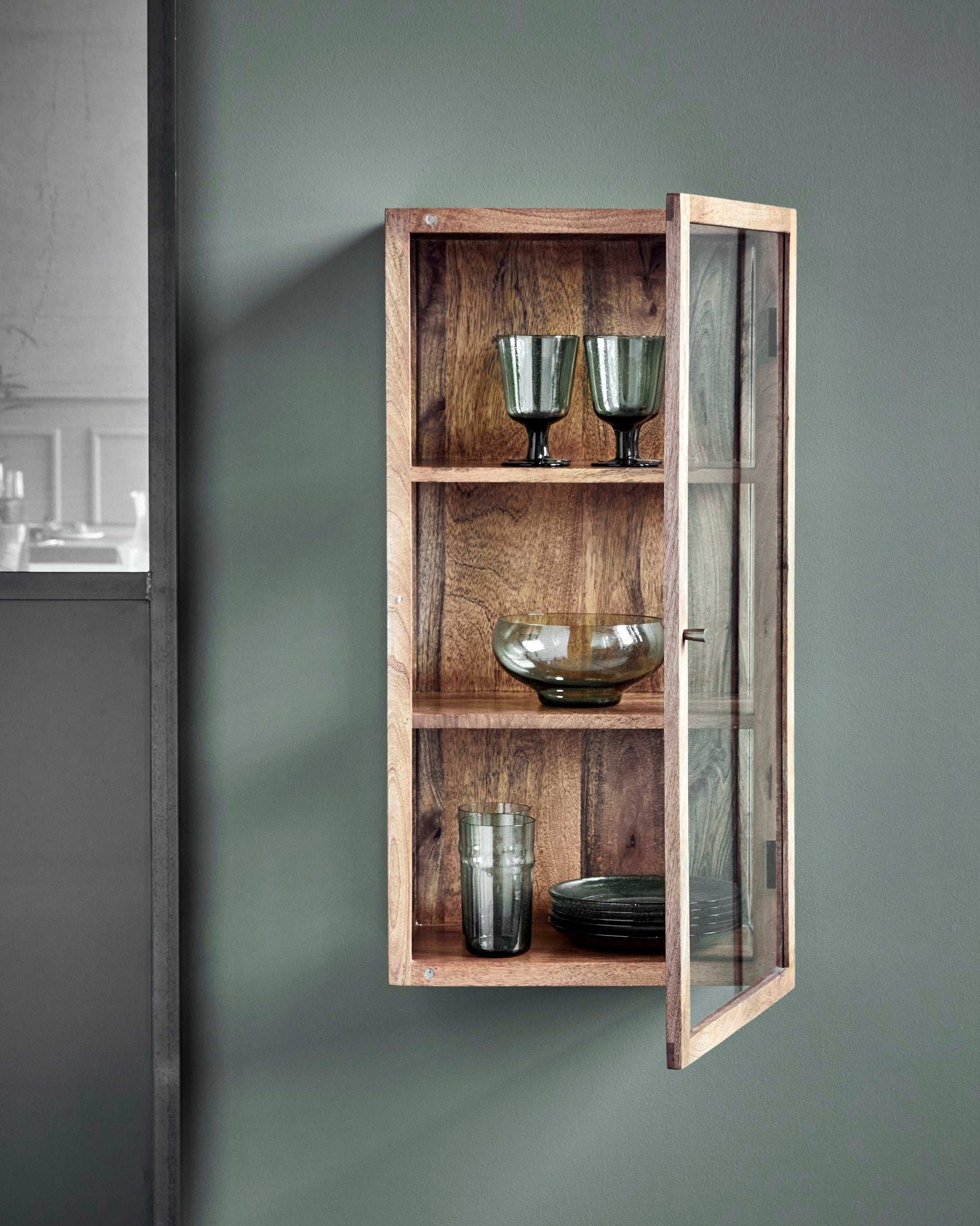 Les trois étagères spacieuses offrent suffisamment de place pour exposer vos plus beaux accessoires déco, verres ou objets de collection. Grâce à son format compact, Montre est parfait pour la cuisine, le salon ou l’entrée. La poignée métallique subtile apporte une touche finale raffinée au design.