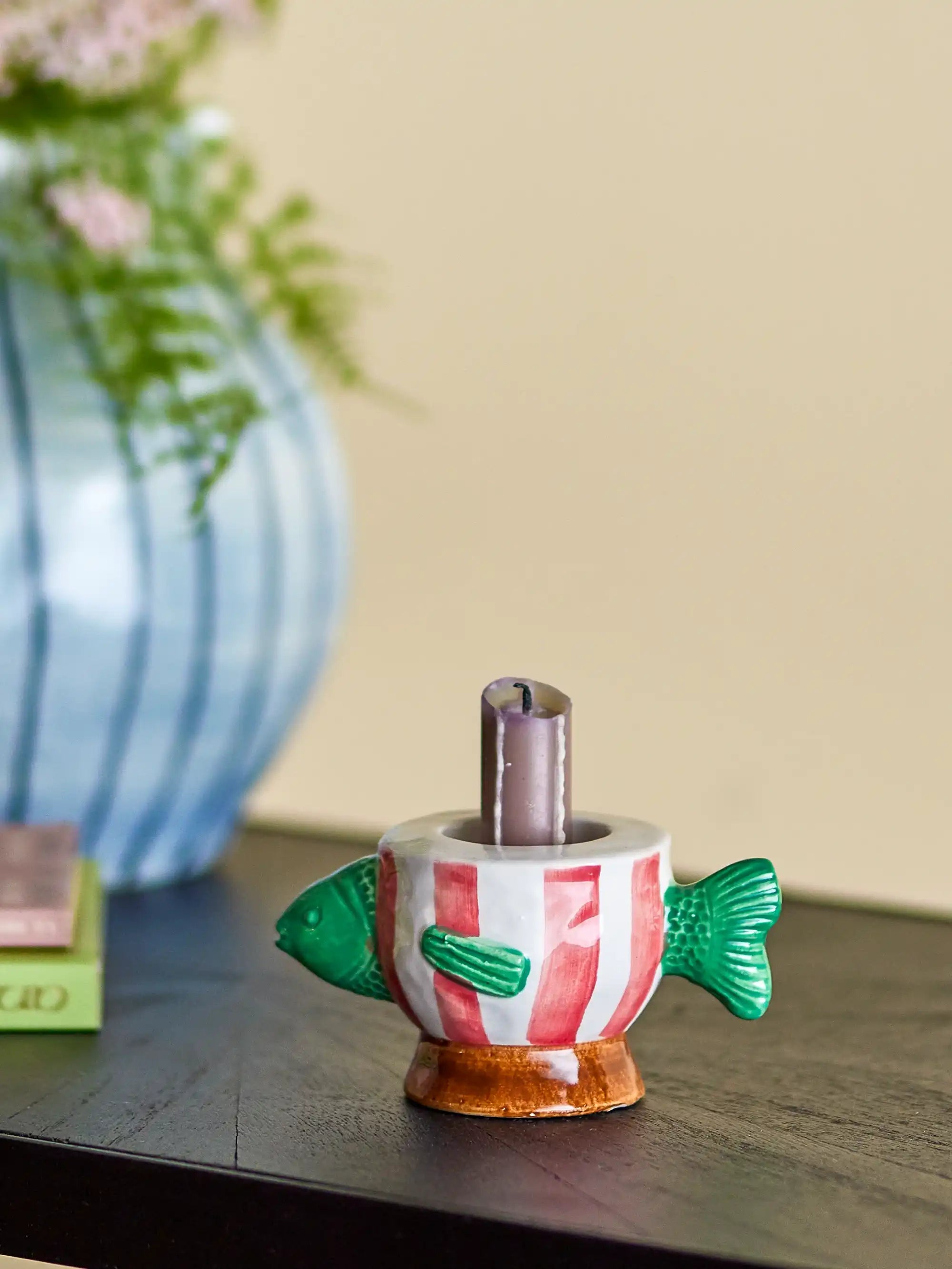 Pourquoi tu vas adorer ce bougeoir : Le bougeoir Codia de Bloomingville, avec sa forme de poisson joyeuse et ses couleurs ludiques, met instantanément un sourire sur ton visage. Apporte une touche scandinave originale à ton intérieur et crée une ambiance chaleureuse dont tu profites vraiment.